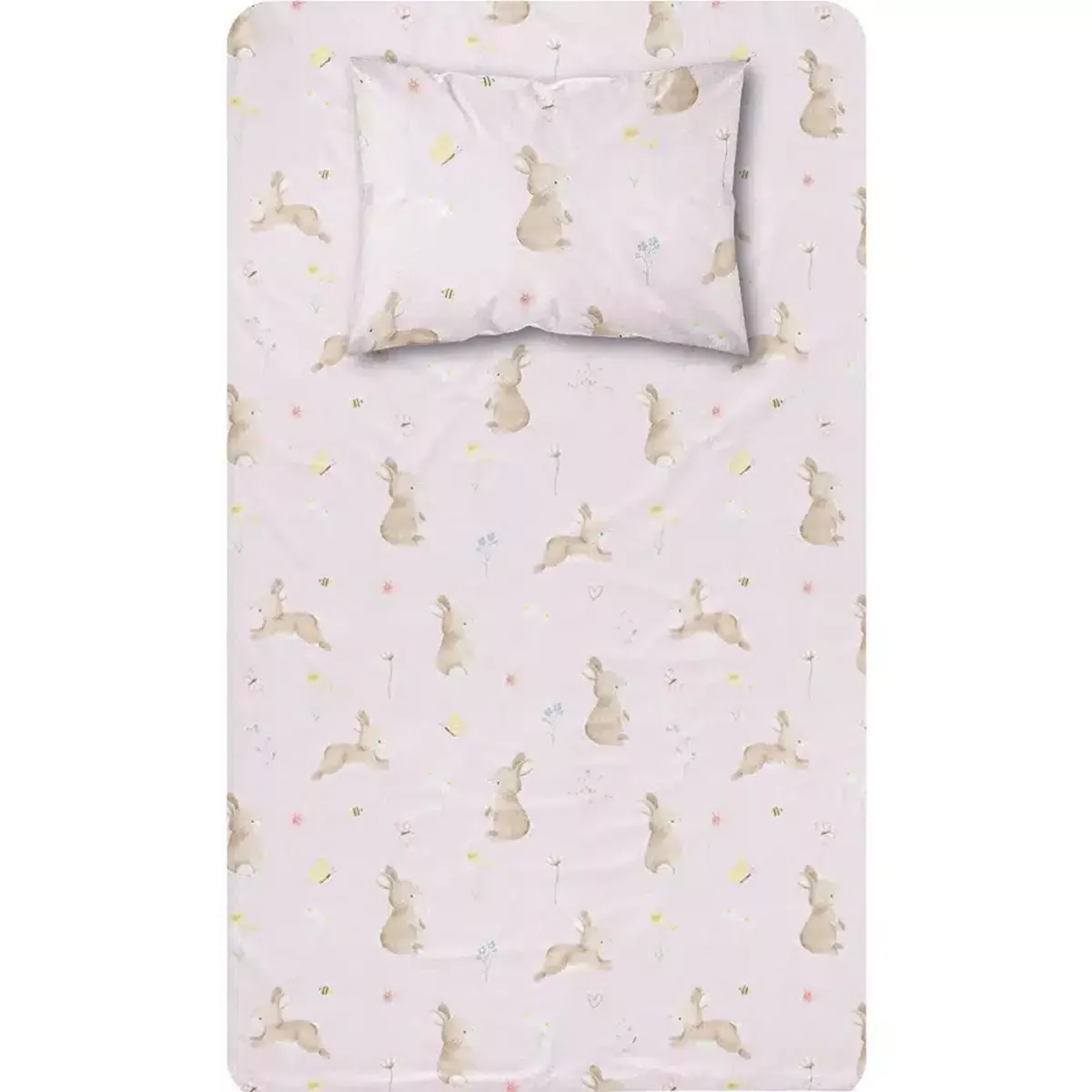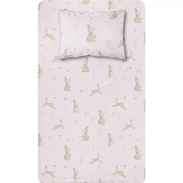 Σετ σεντόνι μονό με μαξιλαροθήκη, από ύφασμα μερσεριζέ, 160 κλωστών, 100% βαμβακερό, εμπριμέ, σχέδιο με λαγουδάκια. Διατίθεται σε 2 χρώματα. Συνδυάστε με κατωσέντονα Solid ή Mix and Match.