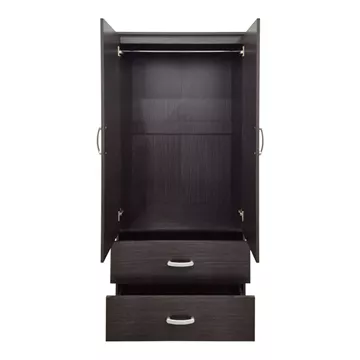 - Περιλαμβάνει δύο πόρτες, εσωτερικά φέρει ράγα για κρεμάστρες ενώ κάτω φέρει δύο μεγάλα συρτάρια για την αποθήκευση ρούχων και αξεσουάρ.