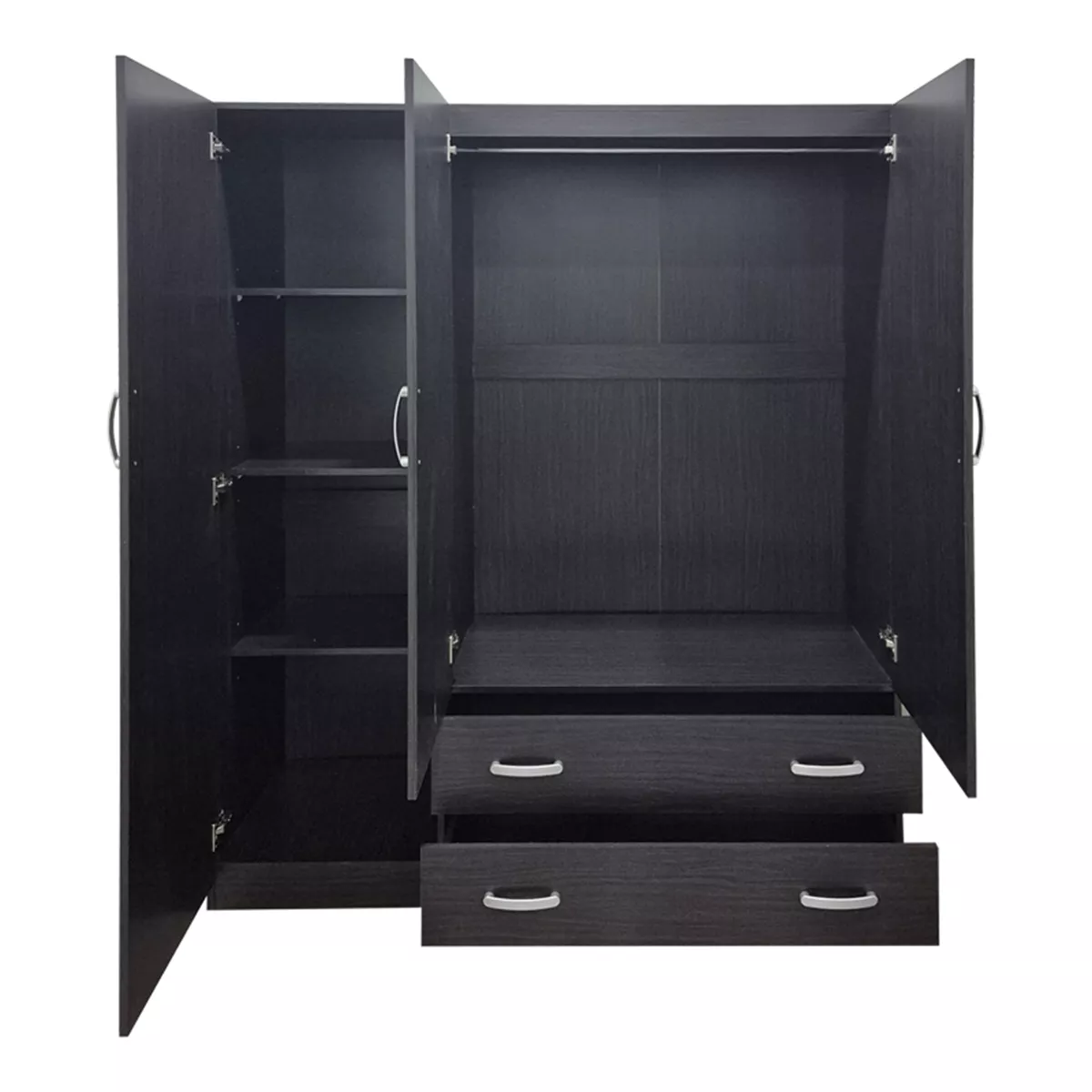 - Περιλαμβάνει τρεις πόρτες, εσωτερικά φέρει ράγα για κρεμάστρες και ράφια ενώ κάτω φέρει δύο μεγάλα συρτάρια για την αποθήκευση ρούχων και αξεσουάρ.