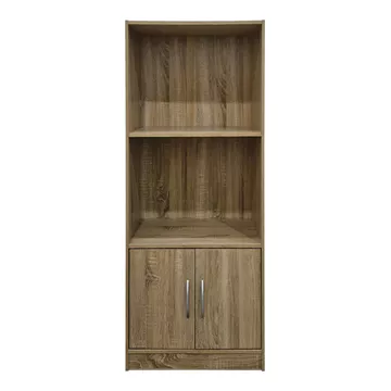 Η κομψή βιβλιοθήκη Tekaro συνδυάζει λειτουργικότητα και στυλ, προσφέροντας άφθονο αποθηκευτικό χώρο για βιβλία και διακοσμητικά αντικείμενα. Διαθέτει ένα ενσωματωμένο ντουλάπι στο κάτω μέρος, ιδανικό για διακριτική αποθήκευση. Οι μεταλλικές λαβές προσθέτουν μια μοντέρνα πινελιά, ενώ η στιβαρή ξύλινη κατασκευή εγγυάται ανθεκτικότητα.