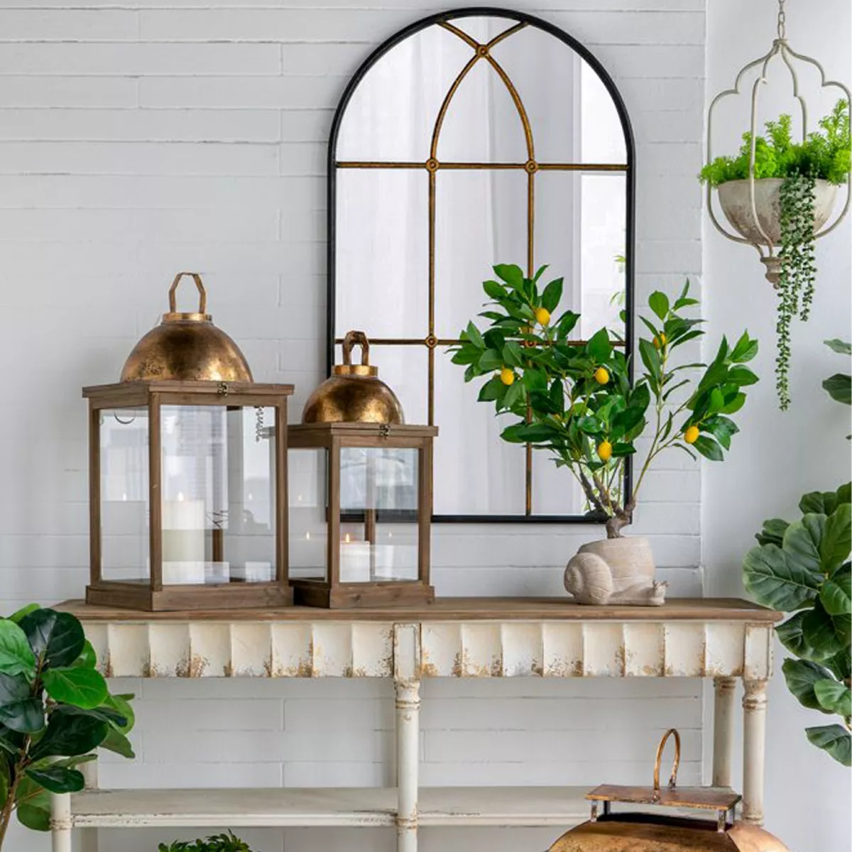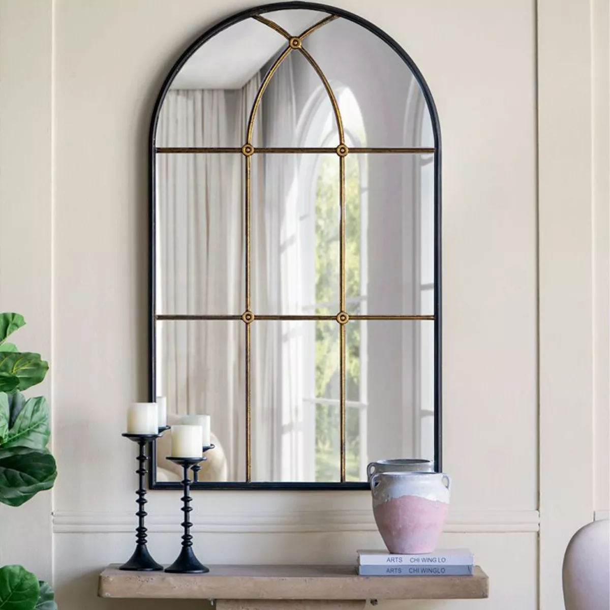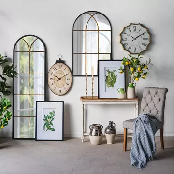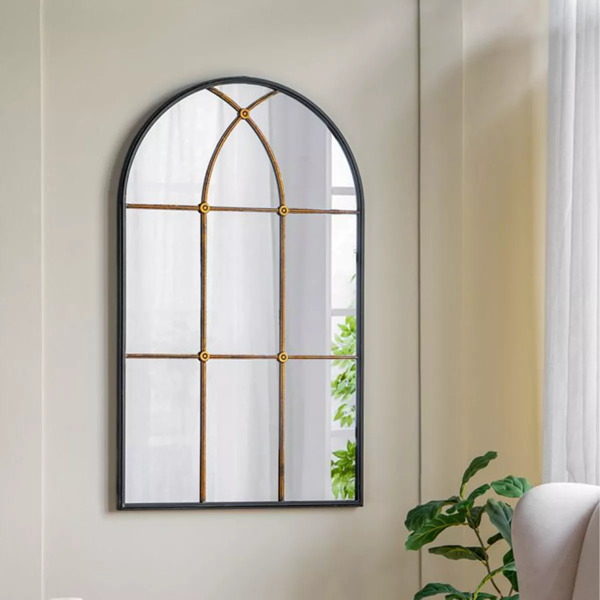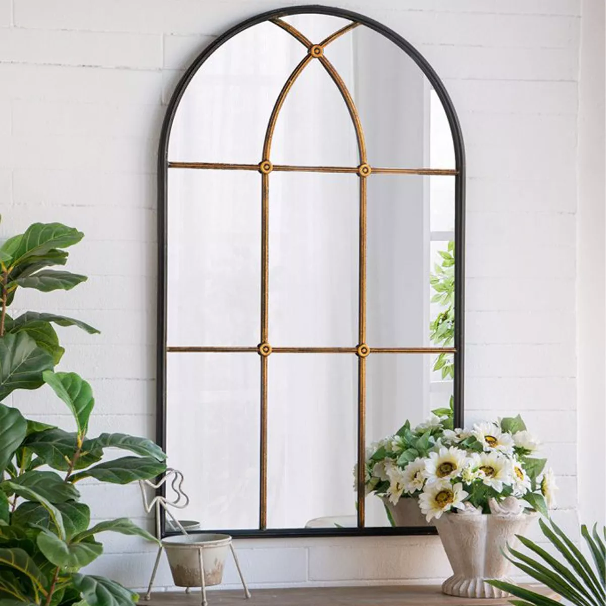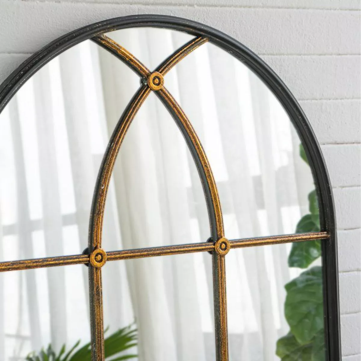 Μαύρος Μεταλλικός Καθρέπτης Τούχου με Μπρονζέ Λεπτομέρειες