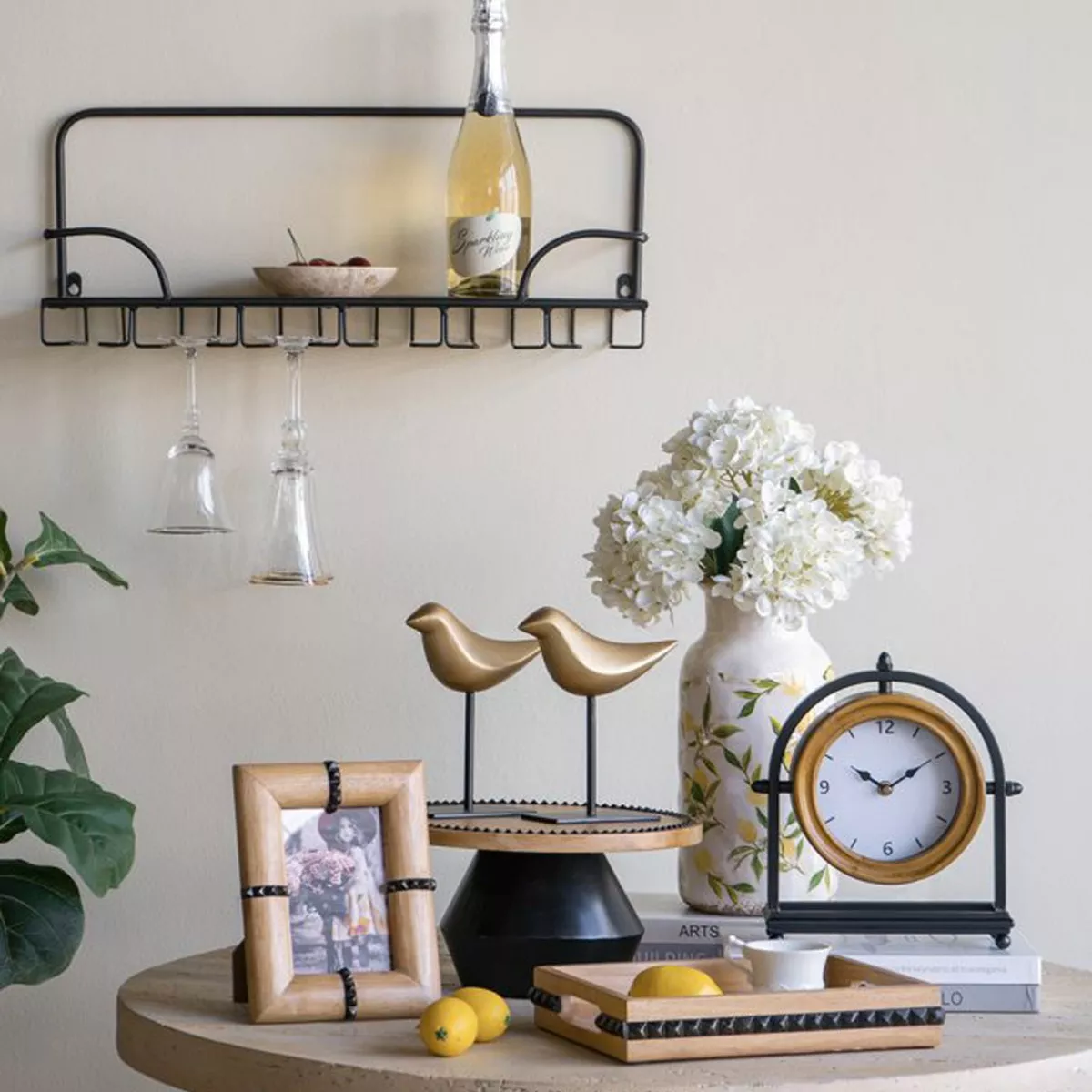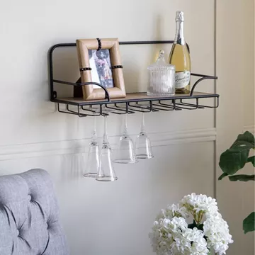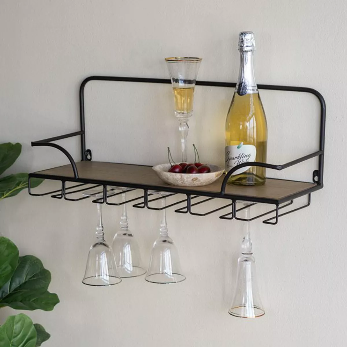 Καφέ Ξύλινο Ράφι Τοίχου για Ποτήρια