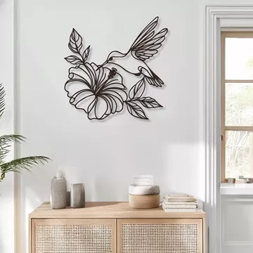Προσθέστε μια πινελιά φυσικής ομορφιάς και κίνησης στον χώρο σας με αυτό το εκλεπτυσμένο μεταλλικό διακοσμητικό Folou. Το σχέδιο απεικονίζει τη μαγική στιγμή που ένα κολιμπρί πλησιάζει ένα ανθισμένο ιβίσκο, δημιουργώντας μια ατμόσφαιρα ηρεμίας και αρμονίας.