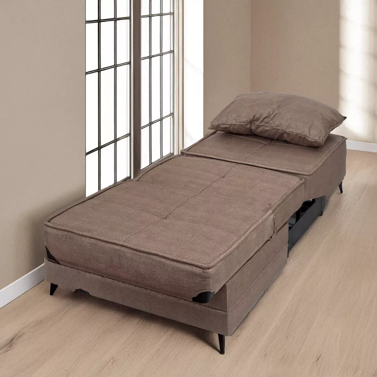 Καφέ Πολυθρόνα Κρεβάτι με Αποθηκευτικό Χώρο