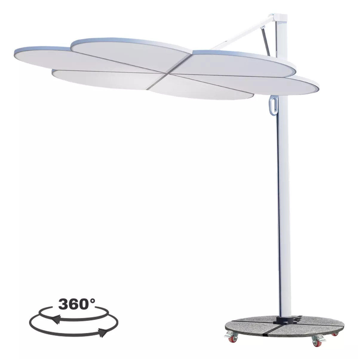 Ομπρέλα Εξωτερικού Χώρου CANNOPY (flower) με βάση γρανίτη και μηχανισμό gas lift σε ΛΕΥΚΟ χρώμα