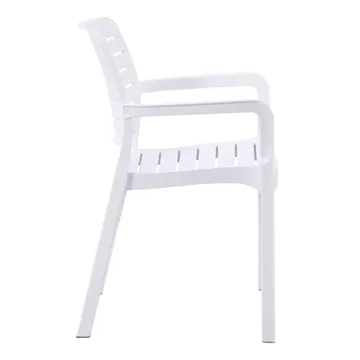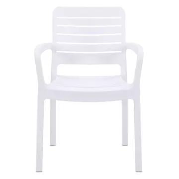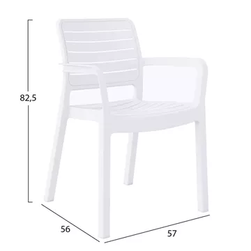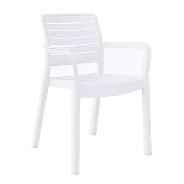 Η πολυθρόνα FLAN είναι μια κλασσική πολυθρόνα εξωτερικού χώρου που θα καλύψει κάθε σας ανάγκη στην αυλή ή το μπαλκόνι σας. Είναι ποιοτική και κομψή στην όψη, ενώ τα σχετικά ψηλά της μπράτσα την καθιστούν αναπαυτικότατη. Όλη η πολυθρόνα είναι από πολυπροπυλένιο σε ΛΕΥΚΟ χρώμα. Είναι στοιβαζόμενη, ελαφριά και άνετη, ιδανική επιλογή και για επαγγελματική χρήση, όπως σε catering κτλ.