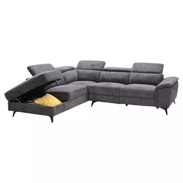 Ο γωνιακός καναπές RESTRO συνδυάζει προηγμένη λειτουργικότητα με σύγχρονη αισθητική, δημιουργώντας το απόλυτο σημείο χαλάρωσης για το σύγχρονο σαλόνι. Με μηχανισμό ανάκλισης πλάτης σε πέντε σημεία και ηλεκτρική ανάκλιση στην γωνιακή θέση μέσω ενός διακόπτη στο μπράτσο, προσφέρει εμπειρία άνεσης υψηλών προδιαγραφών, ενώ ο ενσωματωμένος αποθηκευτικός χώρος στο τελευταίο τμήμα της γωνίας ενισχύει τη λειτουργικότητά του, διατηρώντας τον χώρο οργανωμένο και κομψό.