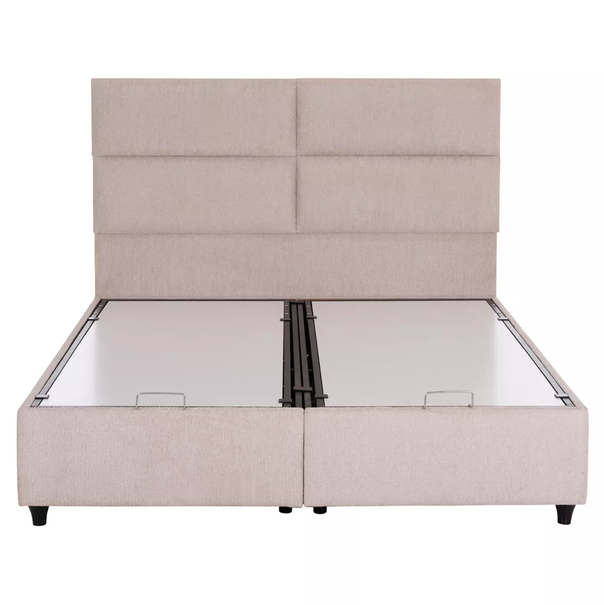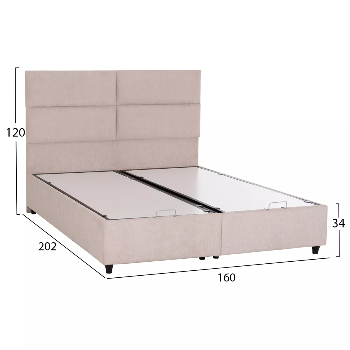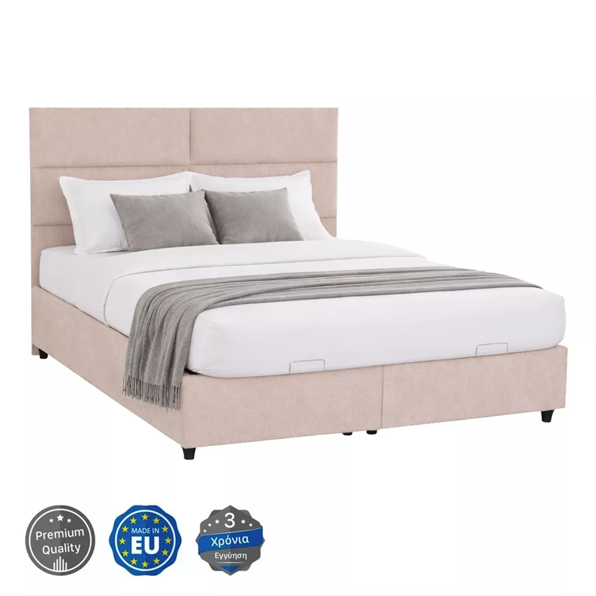 Κρεβάτι Διπλό MILO με Αποθηκευτικό Χώρο 160x200εκ – Μπεζ Υφασμάτινη Επένδυση & Καπιτονέ Κεφαλάρι