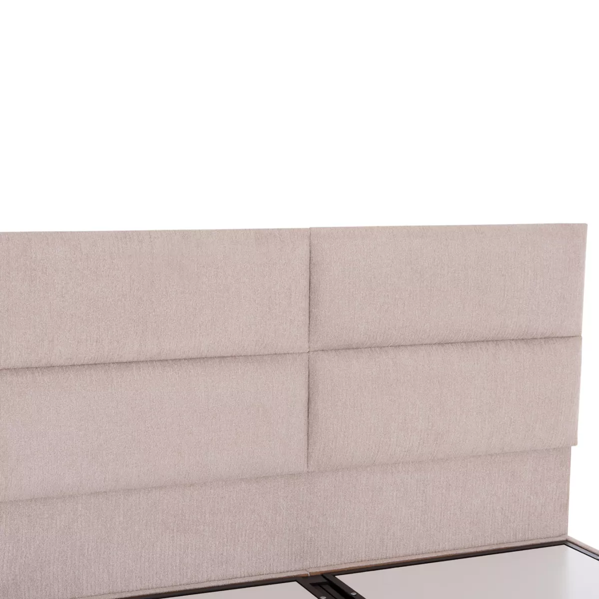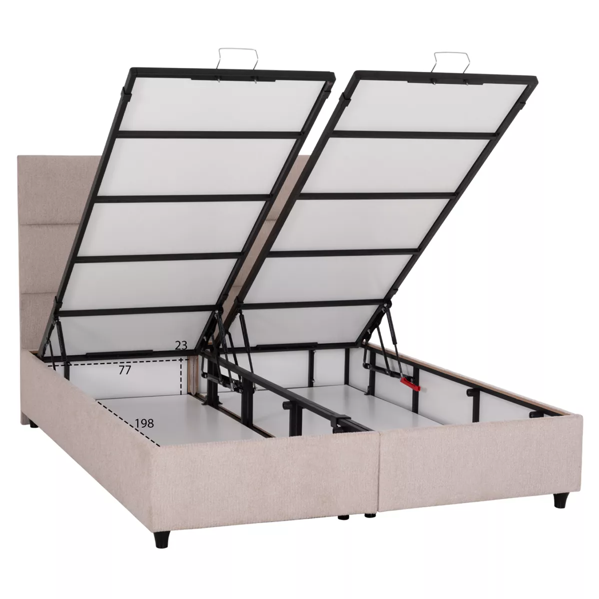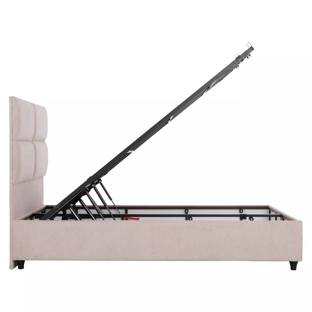 Κρεβάτι Διπλό MILO με Αποθηκευτικό Χώρο 160x200εκ – Μπεζ Υφασμάτινη Επένδυση & Καπιτονέ Κεφαλάρι