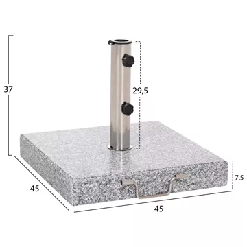 Η Hm6564, είναι η καινούργια πρόταση της εταιρίας μας στις βάσεις για ομπρέλα θαλάσσης. Πρόκειται για μια τετράγωνη βάση από ΓΡΑΝΙΤΗ σε γκρι χρώμα, με ανοξείδωτη χαλύβδινη σωλήνα διαμέτρου Φ48 που μπορεί με σφιγκτήρες να εξυπηρετήσει και μικρότερα μεγέθη. Διαθέτει χερούλι μεταφοράς στην μία πλευρά και 2 (κρυφές) ρόδες ενσωματωμένες στην κάτω πλευρά της βάσης, πράγμα το οποίο σας διευκολύνει σε περίπτωση που χρειαστεί να την μετακινήσετε.