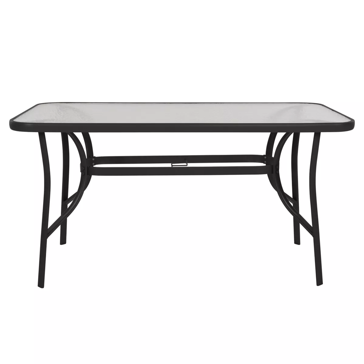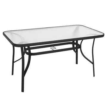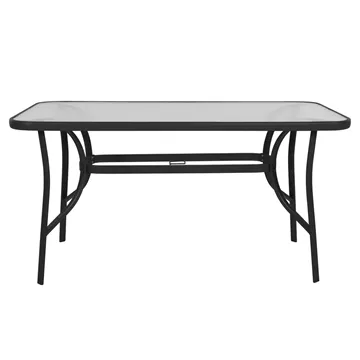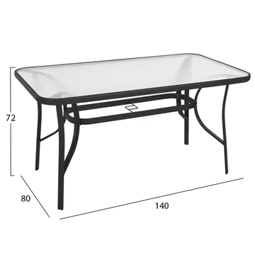 Το τραπέζι BRUNO εξωτερικού χώρου έχει ΜΑΥΡΟ μεταλλικό σκελετό και γυάλινη θολή επιφάνεια! Πρόκειται για πολύ δημοφιλές τραπέζι που δεν λείπει σχεδόν από κανέναν μπαλκόνι ή κήπο. Είναι ορθογώνιο με γωνίες στρογγυλεμένες ενώ το γυαλί της επιφάνειας είναι ενισχυμένο.