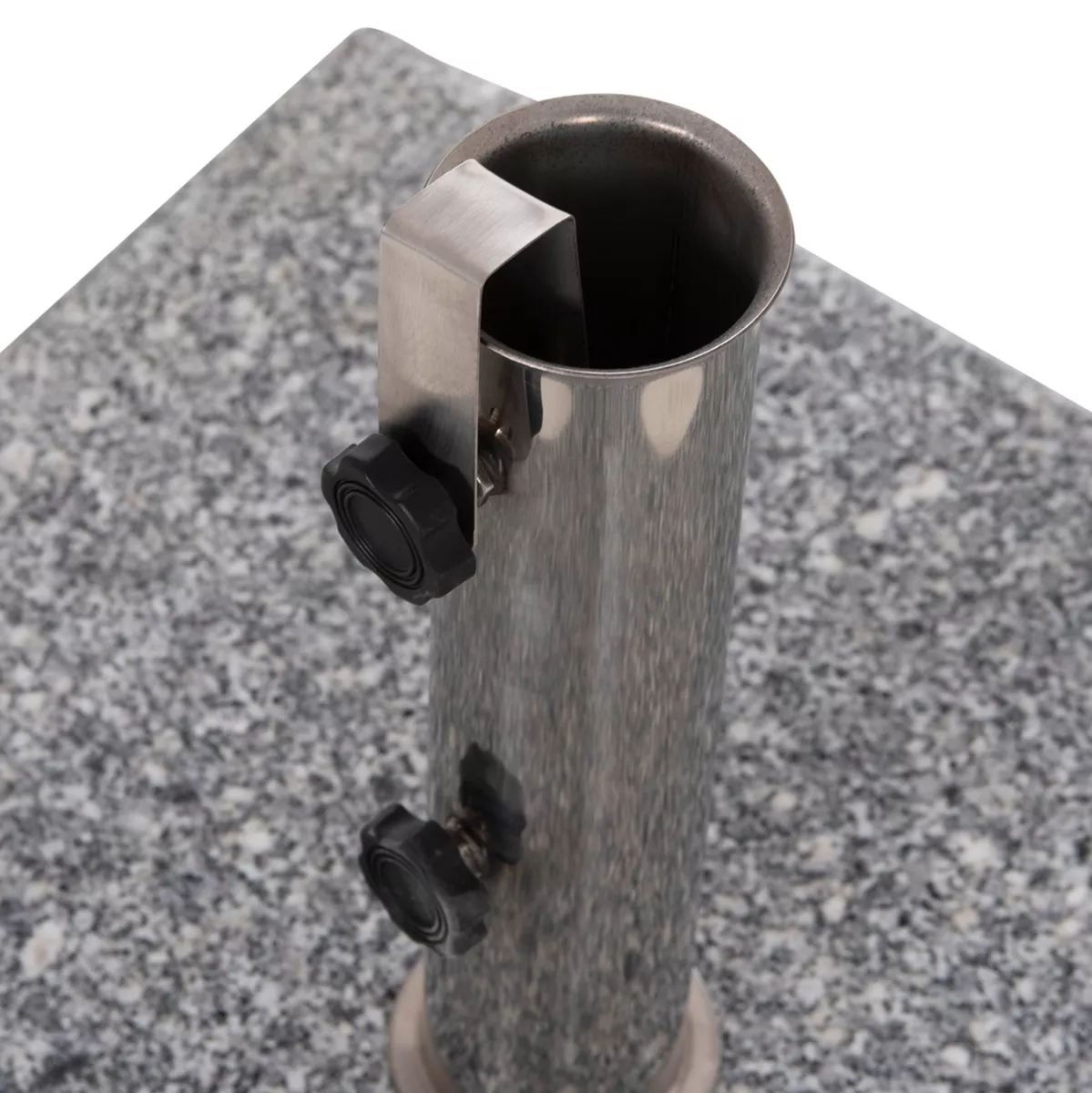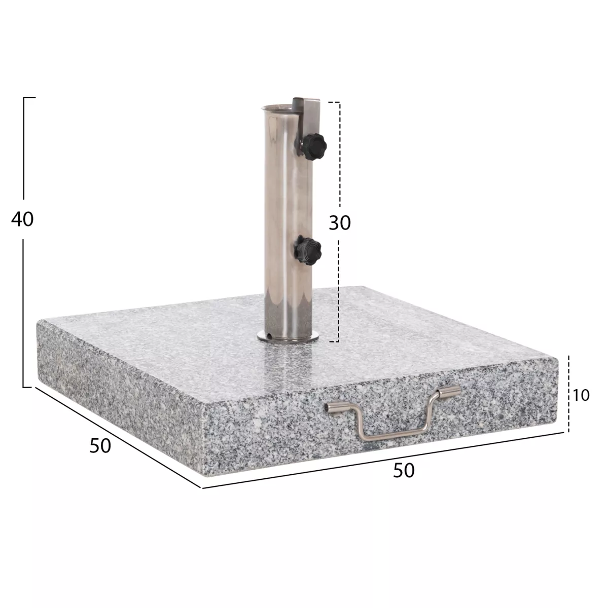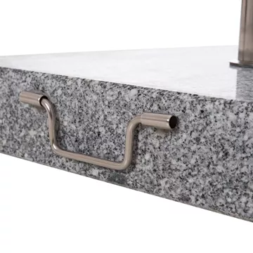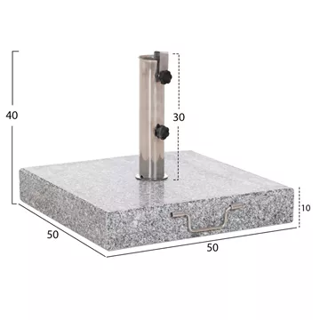 Η Hm6565, είναι η καινούργια πρόταση της εταιρίας μας στις βάσεις για ομπρέλα θαλάσσης. Πρόκειται για μια μεγάλη τετράγωνη βάση από ΓΡΑΝΙΤΗ σε γκρι χρώμα, με ανοξείδωτη χαλύβδινη σωλήνα διαμέτρου Φ58 με σύστημα spring slip fit (με ελατήριο). Διαθέτει χερούλι μεταφοράς στην μία πλευρά και 2 (κρυφές) ρόδες ενσωματωμένες στην κάτω πλευρά της βάσης, πράγμα το οποίο σας διευκολύνει σε περίπτωση που χρειαστεί να την μετακινήσετε.