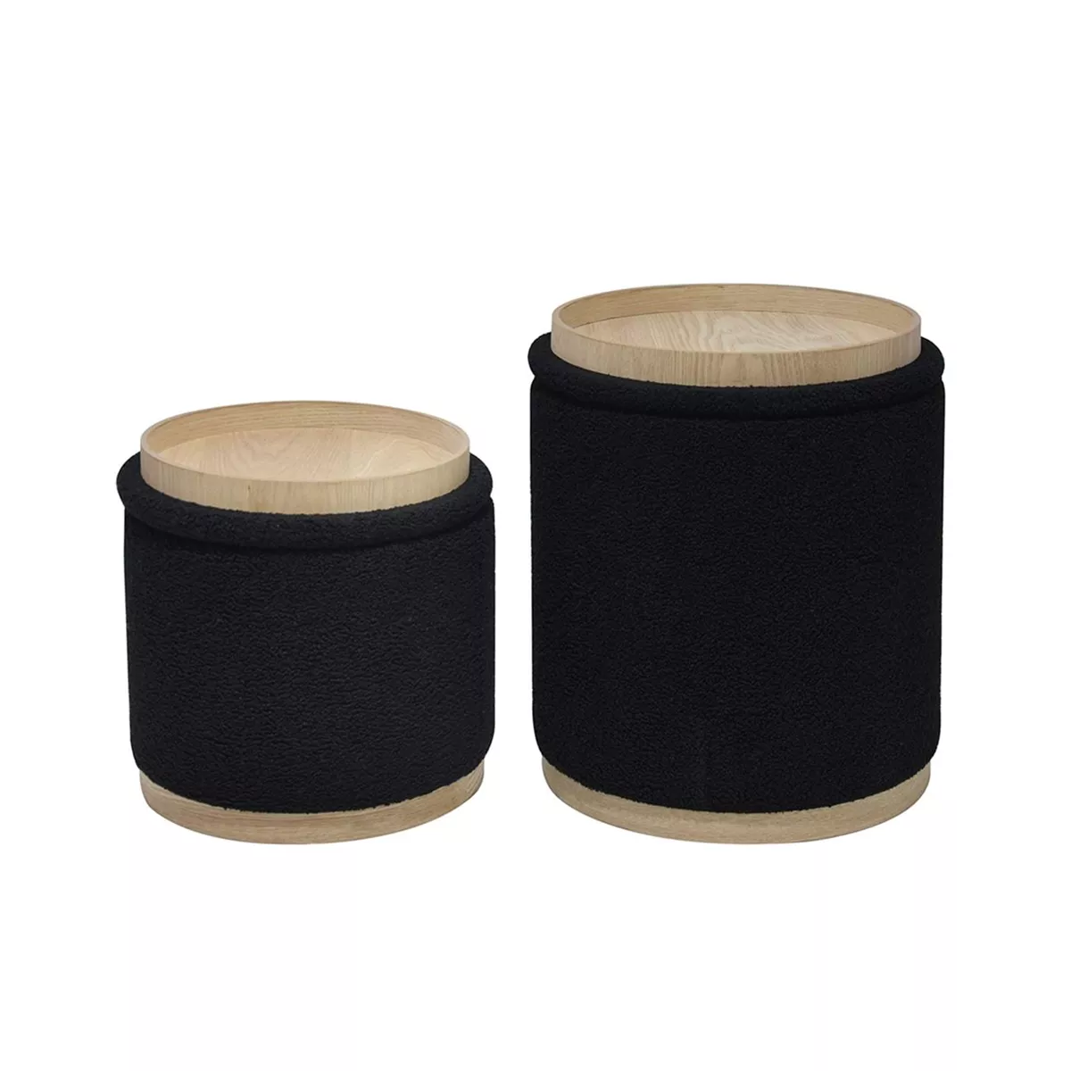 MATIC Set-2 Σκαμπό-Τραπεζάκι με Αποθηκευτικό Χώρο, Teddy Ύφασμα Μαύρο