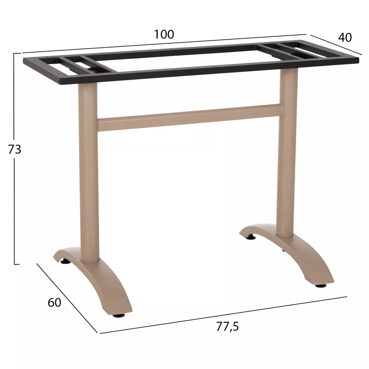 Η ΗΜ461.25 είναι βάση/πόδια για τραπέζι σε ΚΑΠΟΥΤΣΙΝΟ χρώμα. Αυτή η βάση είναι μεταλλική με δύο κολώνες (πόδια) τα οποία στηρίζονται σε αντίστοιχες μεταλλικές αψίδες. Το χαρακτηριστικό που κάνει αυτή την βάση ιδιαίτερα πρακτική είναι ότι στο κάτω μέρος των αψίδων διαθέτει ρυθμιστές ύψους (ρεγουλατόρους). Ιδανική πρόταση για συνδυασμό με επιφάνειες σχεδόν κάθε είδους, όπως βερσαλίτες, HPL, MDF, κτλ.