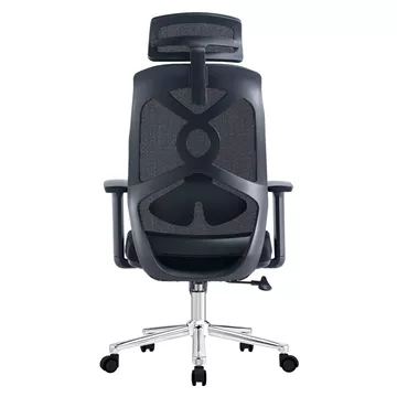 4.Premium Contrast: Ο συνδυασμός του μαύρου σκελετού, της χρωμιωμένης βάσης και των γκρι τροχών δίνει μια μοντέρνα, high-tech αισθητική στο γραφείο σας.