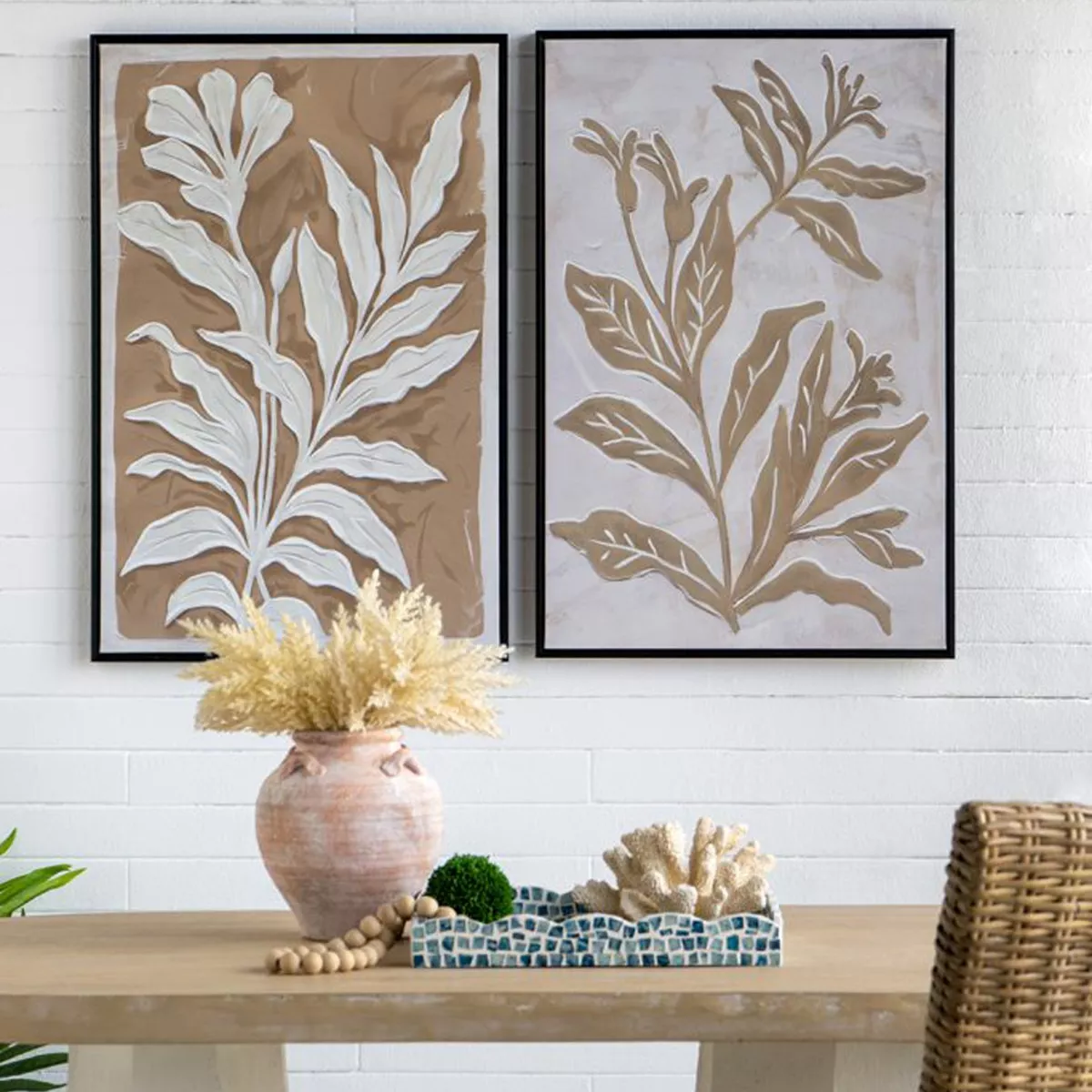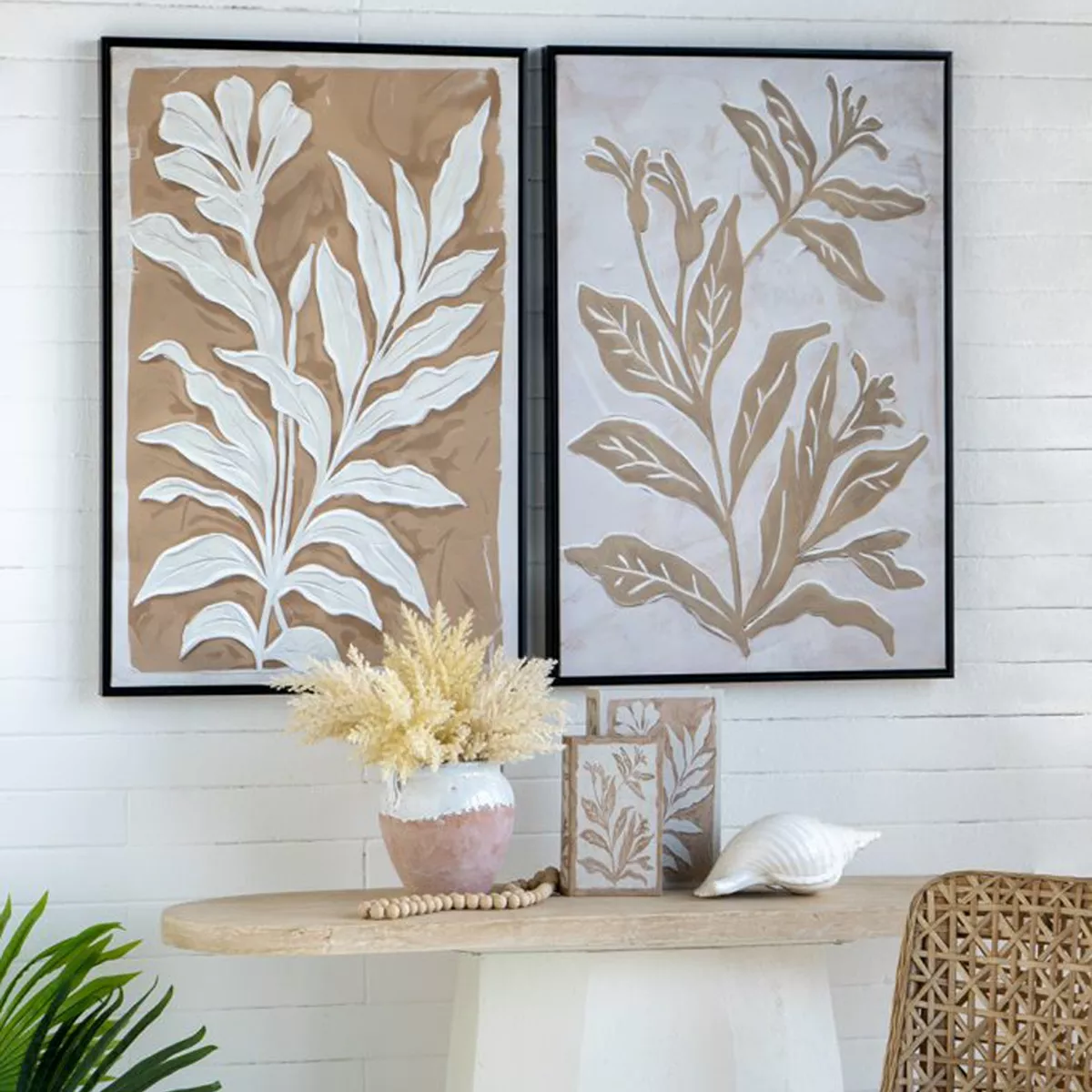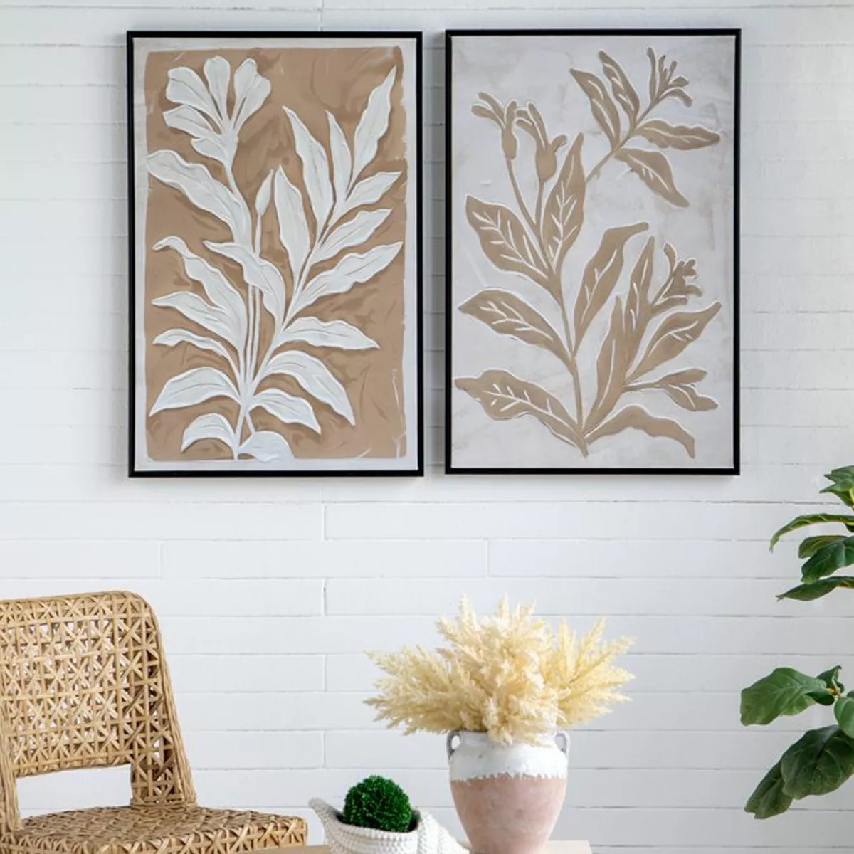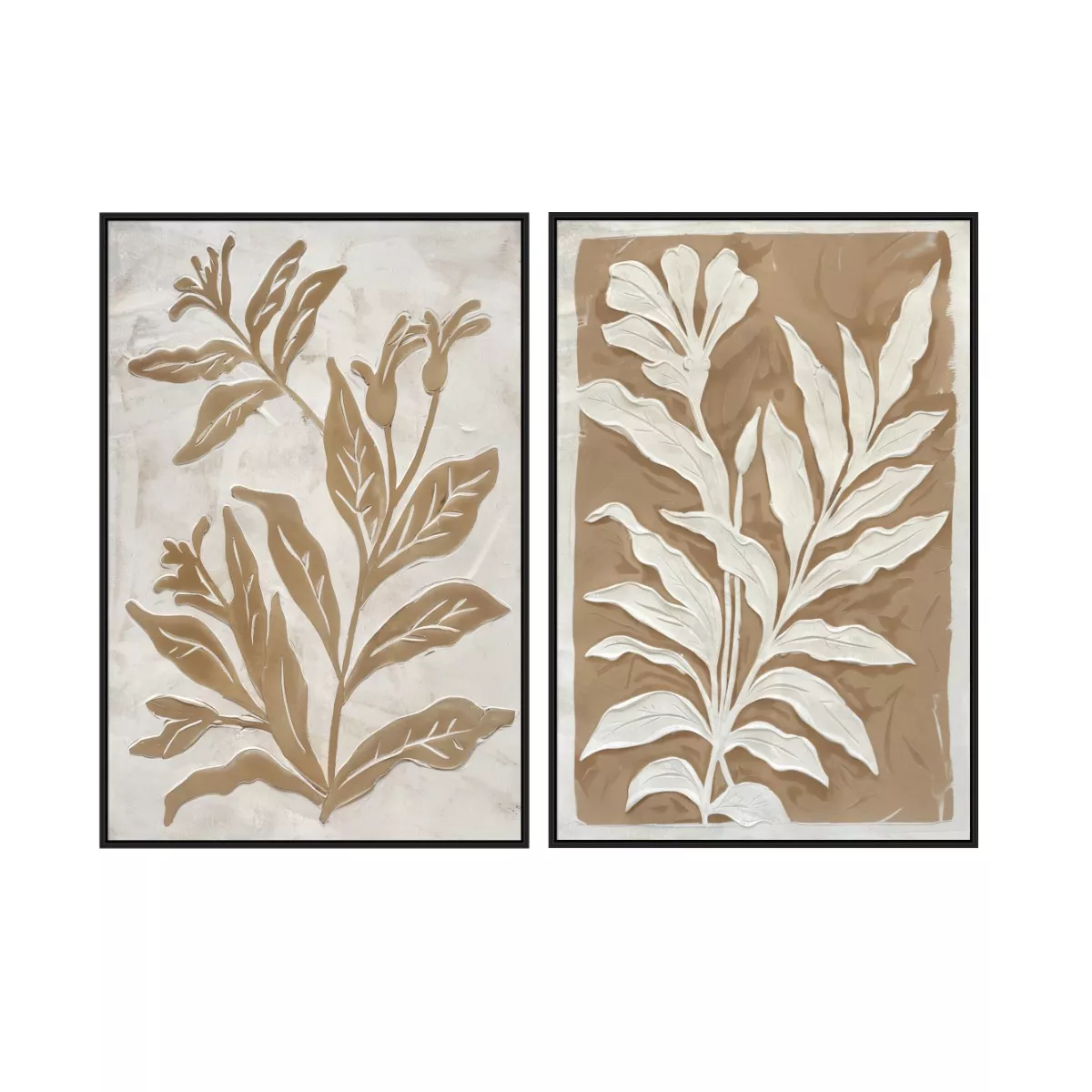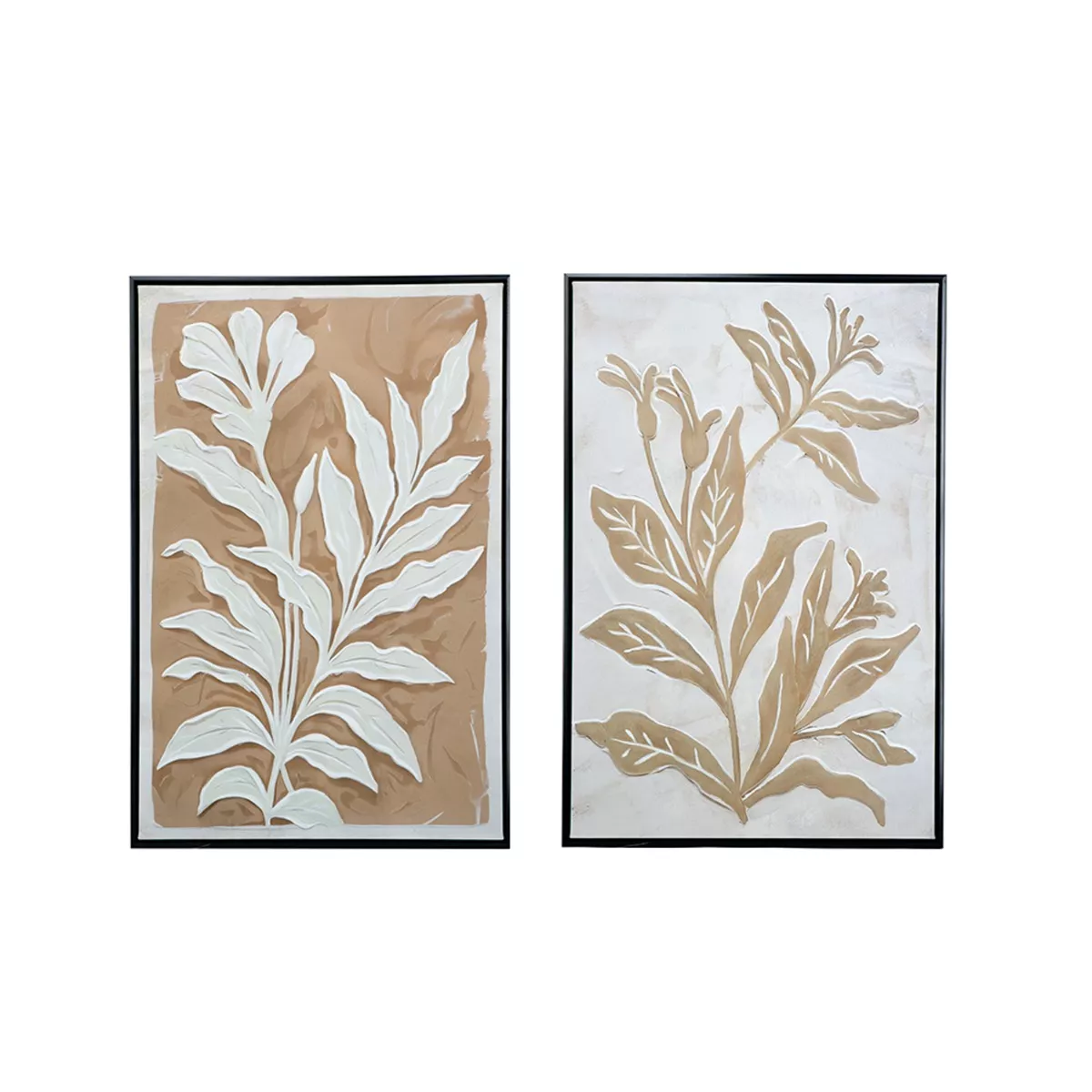 Μπεζ Πίνακες σε Καμβά με Μαύρη Κορνίζα 2pcs