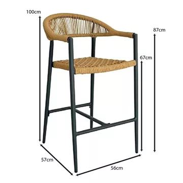 Ε6725 MADISON Σκαμπό Bar Alu Ανθρακί/Rope Wicker Φυσικό