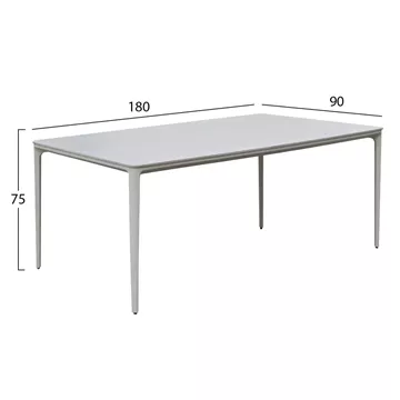 Αναβαθμίστε τον εξωτερικό σας χώρο με το κομψό ορθογώνιο τραπέζι τραπεζαρίας STAD, ιδανικό για 6-8 άτομα. Ο ανθεκτικός σκελετός και τα πόδια από αλουμίνιο σε ΜΠΕΖ προσφέρουν σταθερότητα και μοντέρνα αισθητική. Η επιφάνεια από sintered stone σε ΛΕΥΚΟ χρώμα εξασφαλίζει υψηλή αντοχή σε καιρικές συνθήκες, γρατζουνιές και θερμότητα. Ιδανική επιλογή για κήπο, βεράντα ή patio με minimal design. Επιλέξτε ένα τραπέζι εξωτερικού χώρου που συνδυάζει στυλ, ποιότητα και πρακτικότητα.