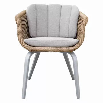 Η πολυθρόνα τραπεζαρίας εξωτερικού χώρου VICTUS συνδυάζει κομψότητα και άνεση, αποτελώντας ιδανική επιλογή για σύγχρονους outdoor χώρους. Ο σκελετός από αλουμίνιο σε ανοιχτή μπεζ απόχρωση προσφέρει ανθεκτικότητα και σταθερότητα, ενώ η επένδυση από twist wicker σε φυσικό χρώμα προσθέτει φυσική υφή και διαχρονικό στυλ.