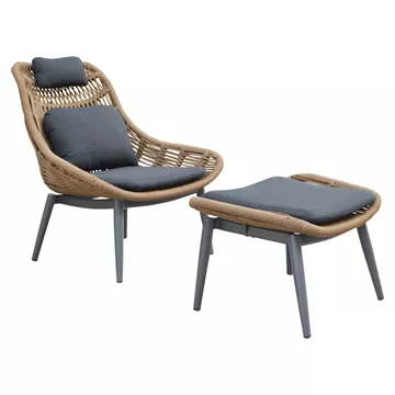 Η πολυθρόνα lounge REMVAZZO με υποπόδιο είναι η απόλυτη επιλογή για στιγμές χαλάρωσης σε εξωτερικούς χώρους. Με κομψό design και φυσικές υφές, δημιουργεί ένα ήρεμο και φιλόξενο περιβάλλον σε βεράντα, κήπο ή patio.