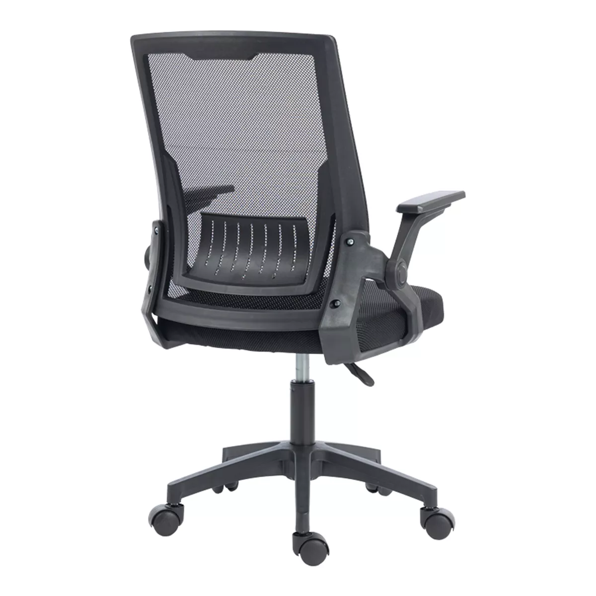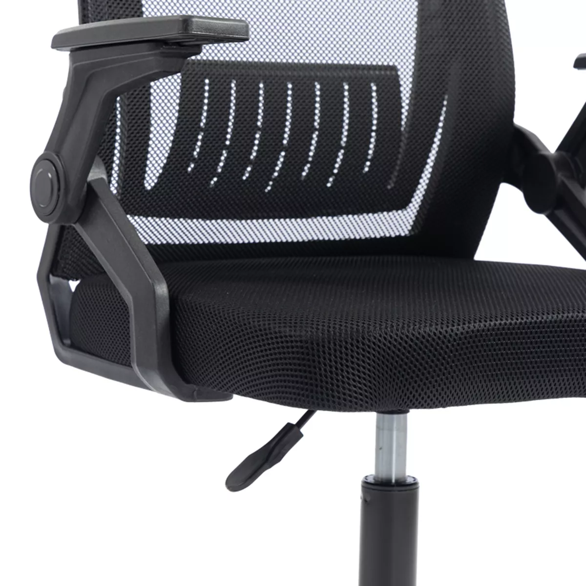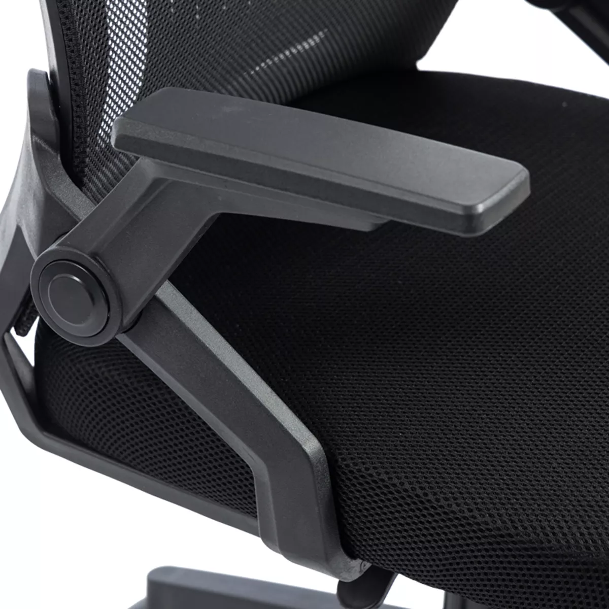 - Ευέλικτος Σχεδιασμός Εξοικονόμησης Χώρου: Τα υποβραχιόνια "Flip-Up" αναδιπλώνονται κατά 90°, επιτρέποντας την καρέκλα να σπρώχνεται πλήρως κάτω από οποιοδήποτε γραφείο. Αυτή η λειτουργία είναι ιδανική για compact γραφεία και γραφεία με περιορισμένο χώρο.