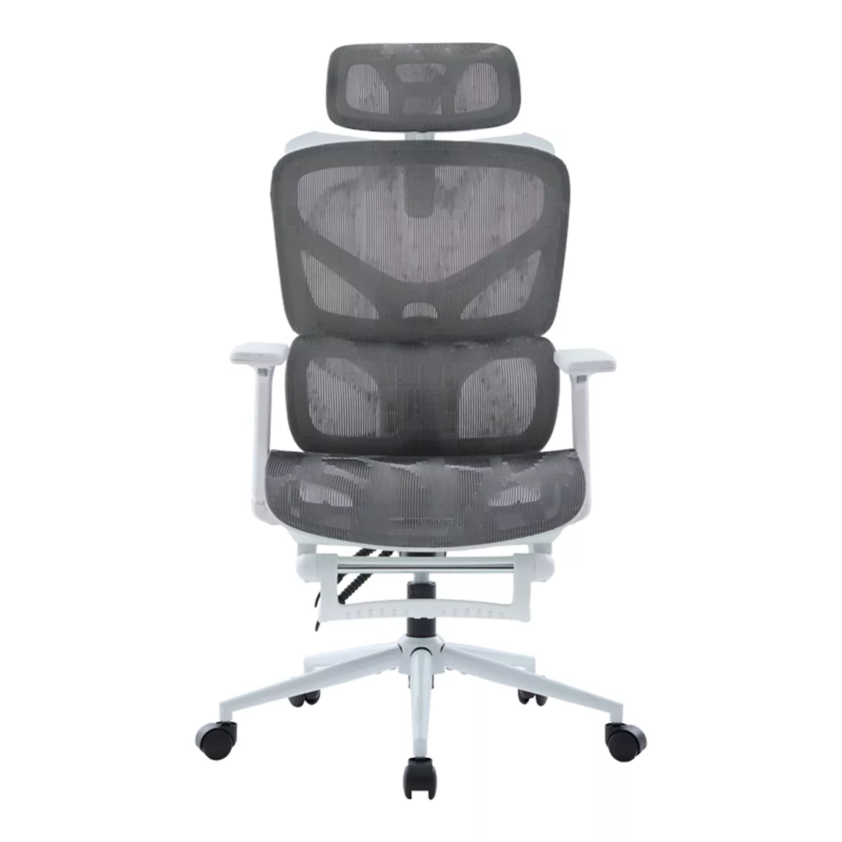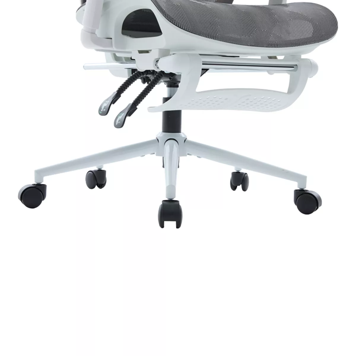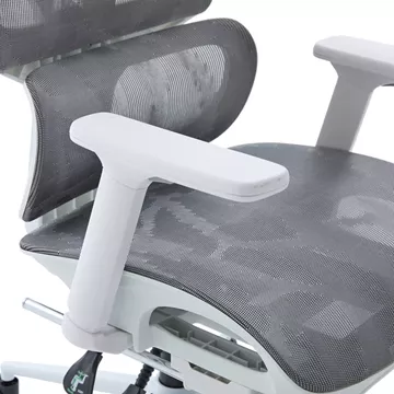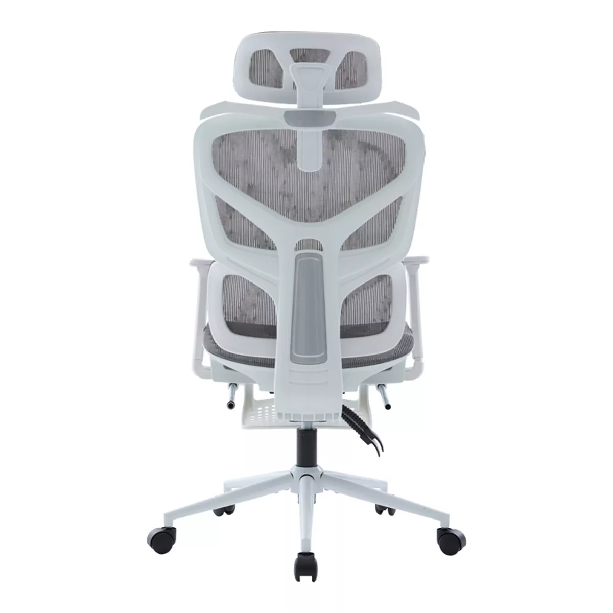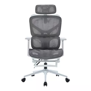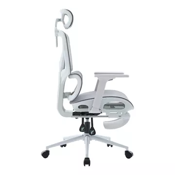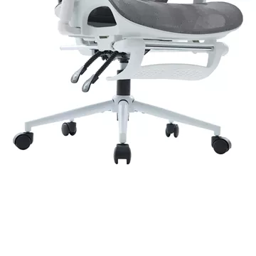 - Υλικά & Κατασκευή: Η επιφάνεια είναι κατασκευασμένη από ενισχυμένο διχτυωτό (thickening mesh) ύφασμα σε γκρι χρωμα, εξασφαλίζοντας άριστη διαπνοή και ανθεκτικότητα. Ο σκελετός σε λευκό χρωμα είναι από PP (Πολυπροπυλένιο), ενώ η στιβαρή βάση (350mm) είναι μεταλλική τύπου KD (Knock-Down), προσδίδοντας σταθερότητα. Οι τροχοί είναι κατασκευασμένοι για να προσφέρουν ομαλή και αθόρυβη κύλιση.