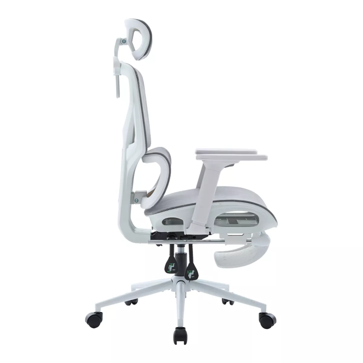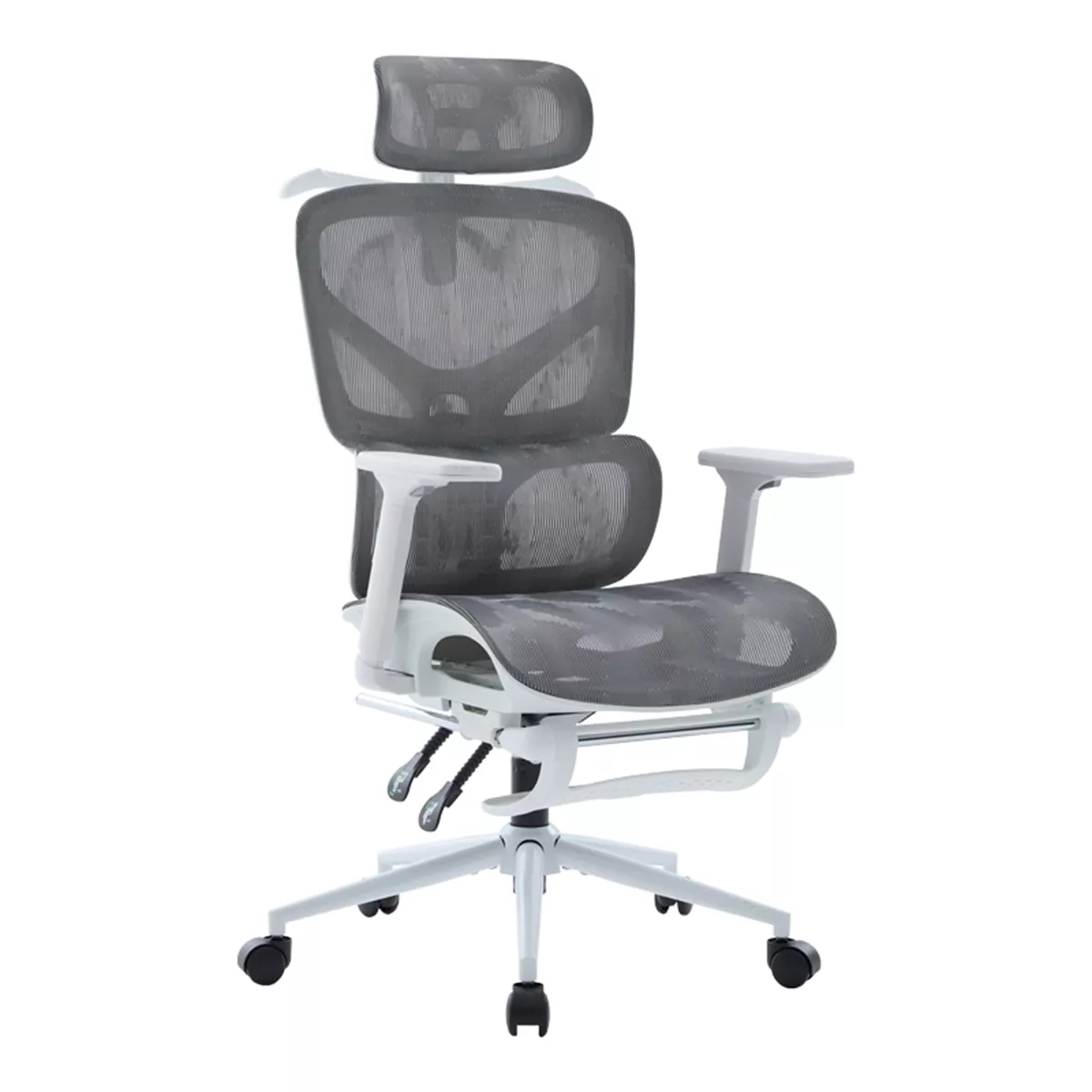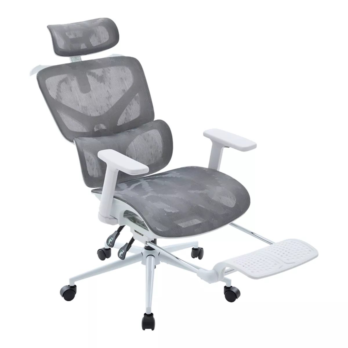 - Υλικά & Κατασκευή: Η επιφάνεια είναι κατασκευασμένη από ενισχυμένο διχτυωτό (thickening mesh) ύφασμα σε γκρι χρωμα, εξασφαλίζοντας άριστη διαπνοή και ανθεκτικότητα. Ο σκελετός σε λευκό χρωμα είναι από PP (Πολυπροπυλένιο), ενώ η στιβαρή βάση (350mm) είναι μεταλλική τύπου KD (Knock-Down), προσδίδοντας σταθερότητα. Οι τροχοί είναι κατασκευασμένοι για να προσφέρουν ομαλή και αθόρυβη κύλιση.