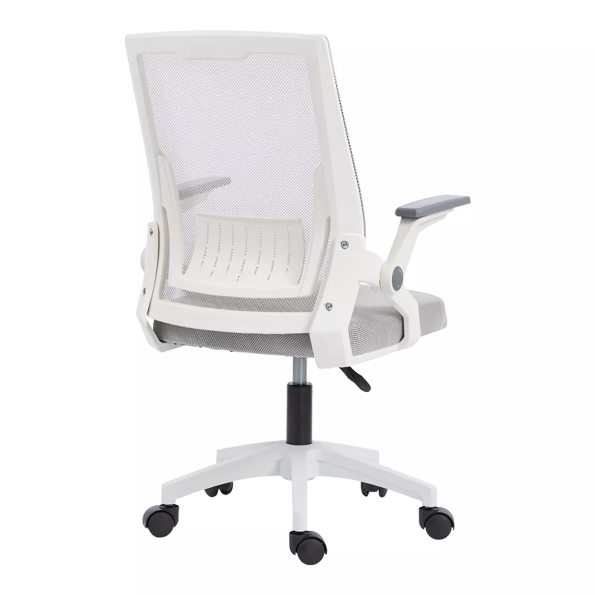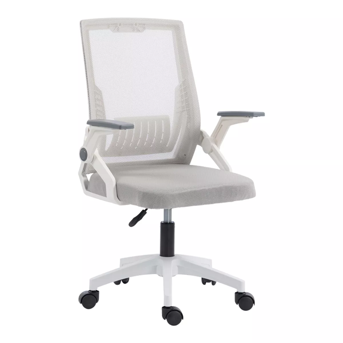 - Ευέλικτος Σχεδιασμός Εξοικονόμησης Χώρου: Τα υποβραχιόνια "Flip-Up" αναδιπλώνονται κατά 90°, επιτρέποντας την καρέκλα να σπρώχνεται πλήρως κάτω από οποιοδήποτε γραφείο. Αυτή η λειτουργία είναι ιδανική για compact γραφεία και γραφεία με περιορισμένο χώρο.