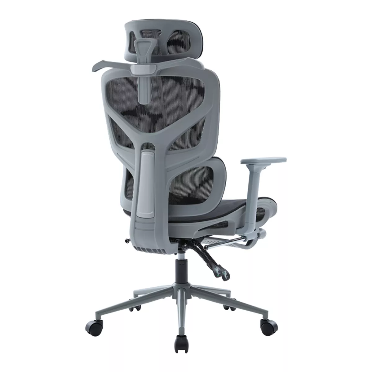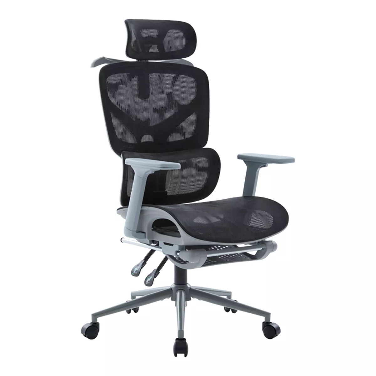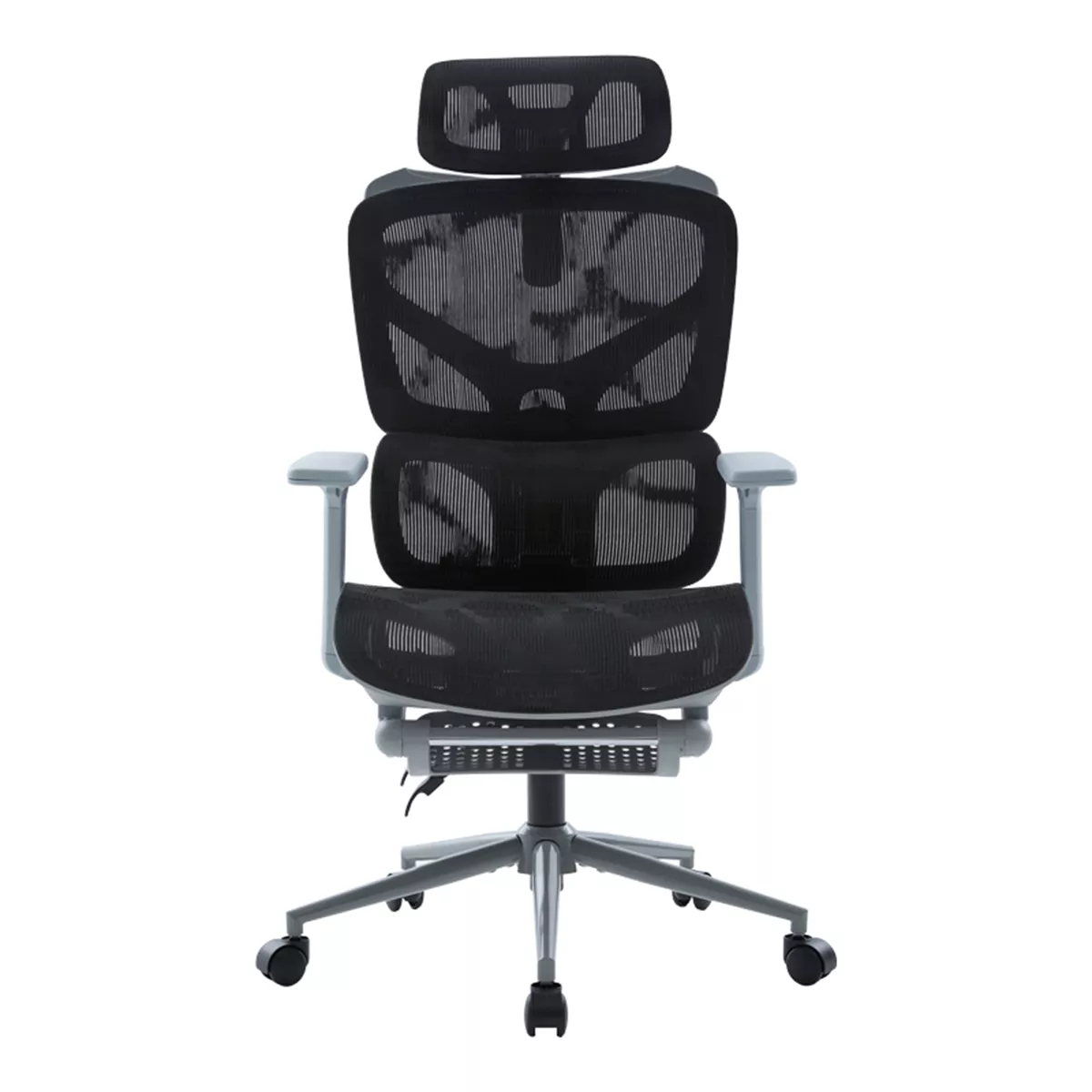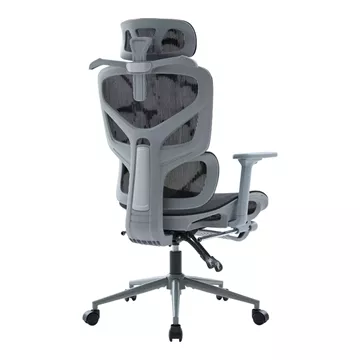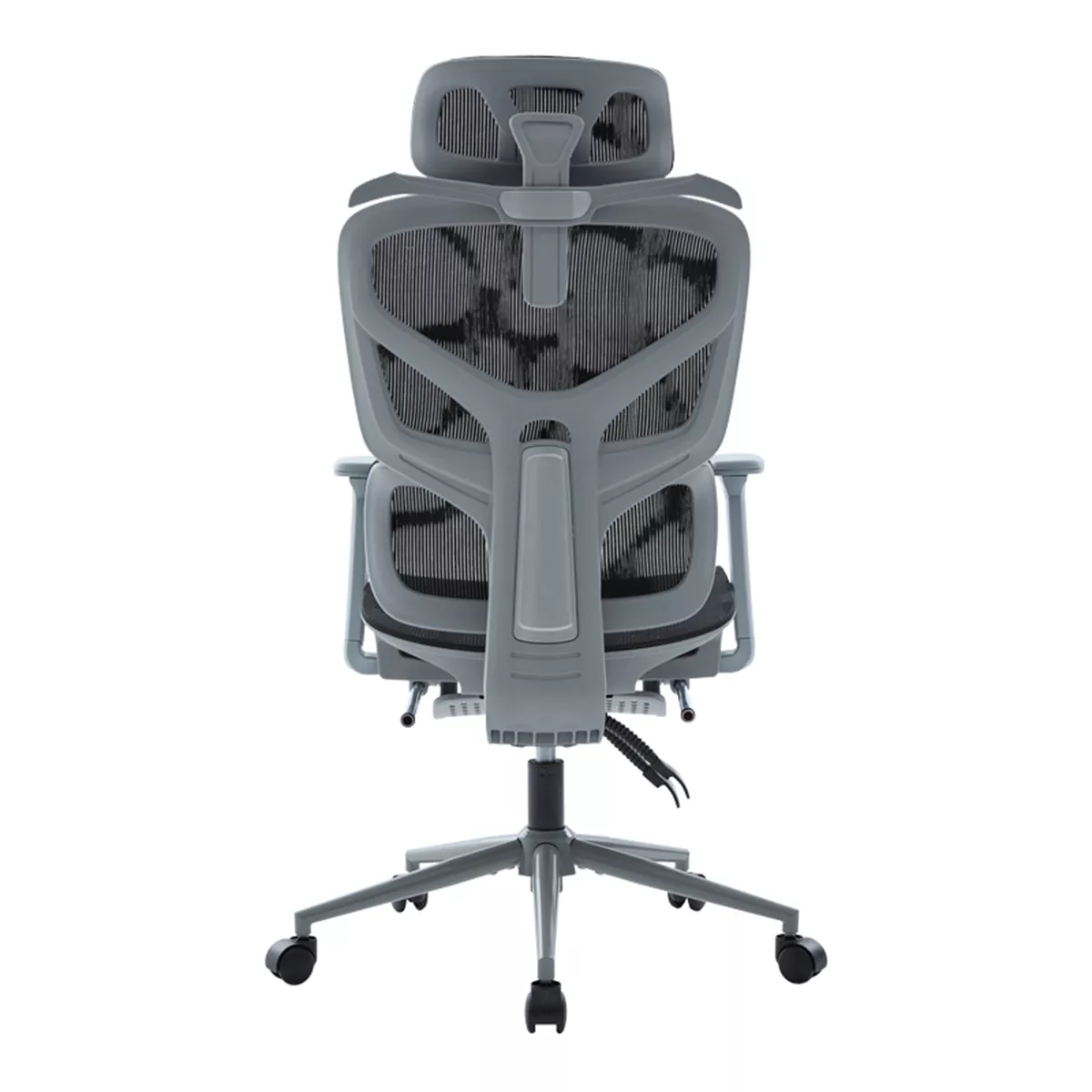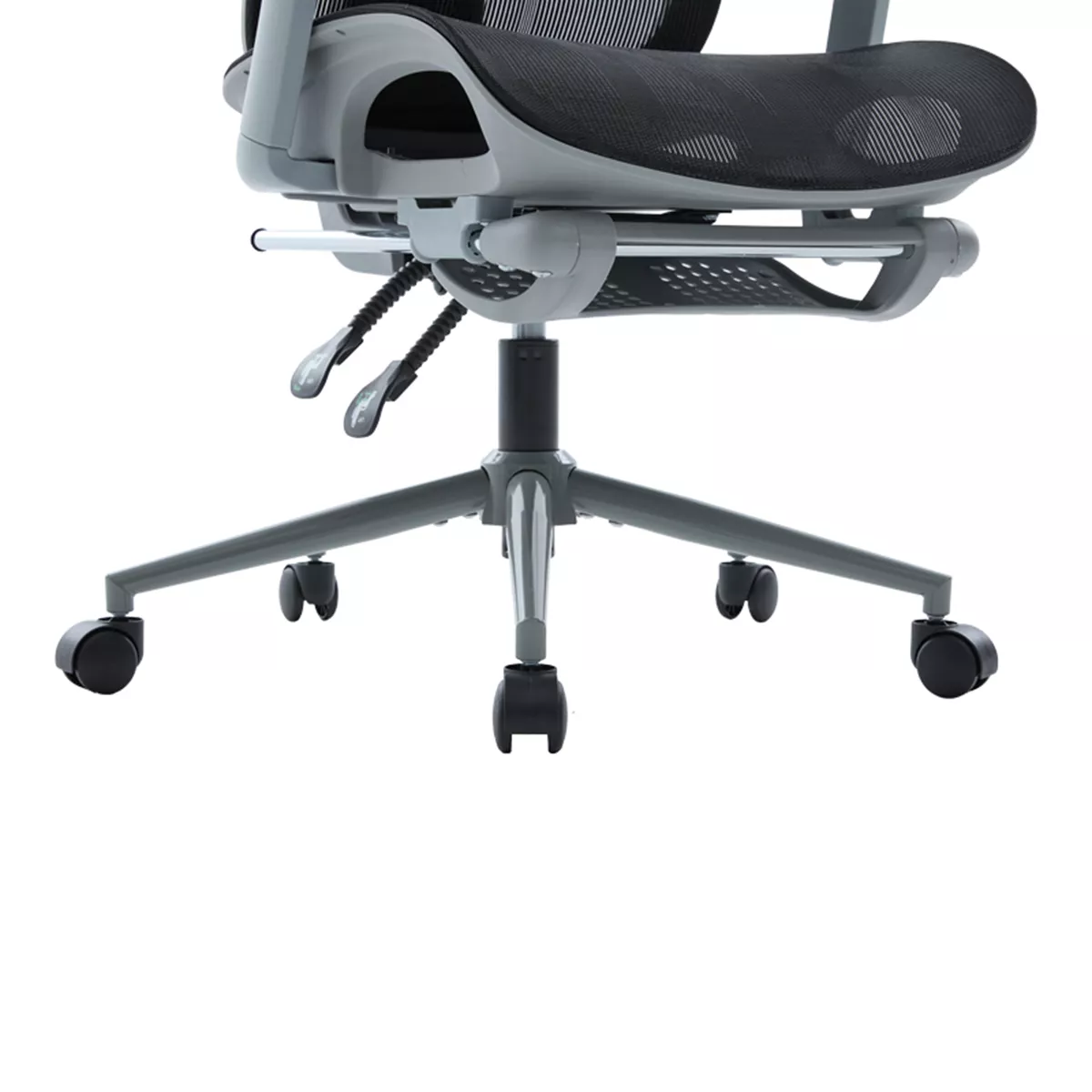 - Υλικά & Κατασκευή: Η επιφάνεια είναι κατασκευασμένη από ενισχυμένο διχτυωτό (thickening mesh) ύφασμα σε μαύρο χρώμα, εξασφαλίζοντας άριστη διαπνοή και ανθεκτικότητα. Ο σκελετός σε γκρι χρώμα είναι από PP (Πολυπροπυλένιο), ενώ η στιβαρή βάση (350mm) είναι μεταλλική τύπου KD (Knock-Down), προσδίδοντας σταθερότητα. Οι τροχοί είναι κατασκευασμένοι για να προσφέρουν ομαλή και αθόρυβη κύλιση.