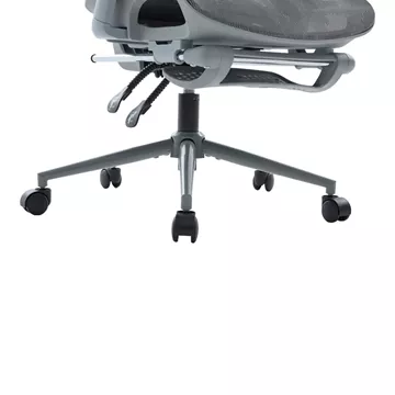 - Υλικά & Κατασκευή: Η επιφάνεια είναι κατασκευασμένη από ενισχυμένο διχτυωτό (thickening mesh) ύφασμα σε γκρι χρώμα, εξασφαλίζοντας άριστη διαπνοή και ανθεκτικότητα. Ο σκελετός είναι από PP (Πολυπροπυλένιο), ενώ η στιβαρή βάση (350mm) είναι μεταλλική τύπου KD (Knock-Down), προσδίδοντας σταθερότητα. Οι τροχοί είναι κατασκευασμένοι για να προσφέρουν ομαλή και αθόρυβη κύλιση.