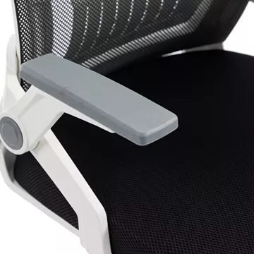 - Ευέλικτος Σχεδιασμός Εξοικονόμησης Χώρου: Τα υποβραχιόνια "Flip-Up" αναδιπλώνονται κατά 90°, επιτρέποντας την καρέκλα να σπρώχνεται πλήρως κάτω από οποιοδήποτε γραφείο. Αυτή η λειτουργία είναι ιδανική για compact γραφεία και γραφεία με περιορισμένο χώρο.