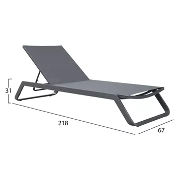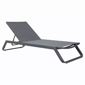 Η ξαπλώστρα MARIMAR συνδυάζει εργονομικό σχεδιασμό και διαχρονική αισθητική, προσφέροντας μέγιστη άνεση και ανθεκτικότητα. Διαθέτει σκελετό από αλουμίνιο σε ΓΚΡΙ χρώμα, ενώ η επένδυση είναι από ανθεκτικό ύφασμα textilene σε ίδιο χρώμα, ιδανικό για χρήση σε εξωτερικούς χώρους. Η πλάτη ρυθμίζεται σε τέσσερα επίπεδα, συν μία εντελώς επίπεδη θέση, για απόλυτη προσαρμογή στις ανάγκες ξεκούρασης. Ιδανική για επαγγελματική χρήση!