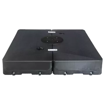 Η τετράγωνη βάση ομπρέλας θαλάσσης από ανθεκτικό P.E. σε μαύρο χρώμα προσφέρει μέγιστη σταθερότητα και ασφάλεια. Γεμίζει με νερό ή με μίξη νερού και άμμου, φτάνοντας έως και 160 kg βάρος για ισχυρή στήριξη σε κάθε καιρό. Κατασκευασμένη από πολυαιθυλένιο υψηλής ποιότητας, αποτελεί ιδανική επιλογή για παραλία, κήπο ή επαγγελματικούς εξωτερικούς χώρους. Διαθέτει και ροδάκια για εύκολη μεταφορά. Η ομπρέλα βιδώνεται σε ειδικά διαμορφωμένες υποδοχές στο πάνω μέρος της βάσης.