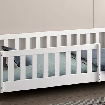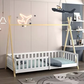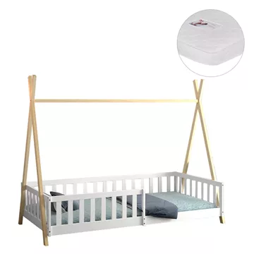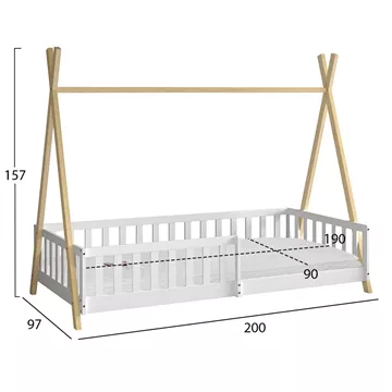 Σας παρουσιάζουμε το «MUNK» που είναι ένα καινούργιο παιδικό κρεβάτι τύπου Montessori που σημαίνει ότι έχει σχεδιαστεί σύμφωνα με το εκπαιδευτικό σύστημα Montessori, κατά το οποίο τα παιδιά μαθαίνουν καλύτερα, όταν επιλέγουν μόνα τους τι θα κάνουν. Το χαμηλό ύψος κρεβατιού βοηθά να εξερευνούν την αυτονομία τους και να ανεβοκατεβαίνουν από το κρεβάτι τους ελεύθερα ανά πάσα στιγμή. Είναι σε διάσταση για μονό στρώμα 90x190 εκ, και αποτελεί μια άριστης ποιότητας, μοντέρνα και ασφαλή επιλογή για το παιδικό δωμάτιο. Είναι ξύλινο σε διχρωμία ΦΥΣΙΚΟΥ-ΛΕΥΚΟΥ βαμμένο με αβλαβές βερνίκι με βάση το νερό και μη τοξικό, ιδανικό για παιδιά. Το κρεβάτι έχει σχήμα σκηνής που θα δώσει μια ευχάριστη, «ζεστή», και παιχνιδιάρικη όψη σε κάθε παιδικό δωμάτιο, ενώ διαθέτει περιμετρικά κάγκελα για ακόμα μεγαλύτερη ασφάλεια.