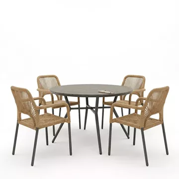 To σετ περιλαμβάνει τέσσερις πολυθρόνες και ένα τραπέζι.Τεχνικά χαρακτηριστικά τραπεζιού: