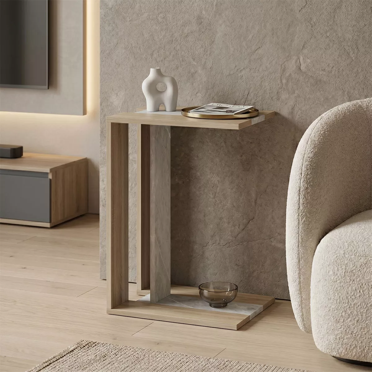 Βοηθητικό τραπεζάκι με πρωτοποριακό design, σχεδιασμένο ειδικά ως βοηθητικό έπιπλο για την κρεβατοκάμαρα ή τον καναπέ.