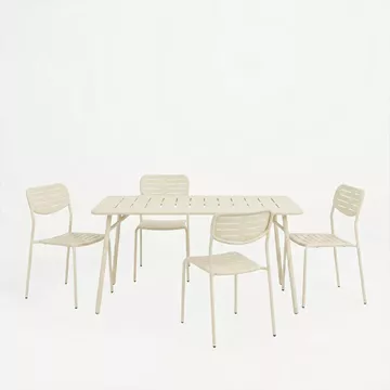 Δημιουργήστε μια κομψή και λειτουργική γωνιά εστίασης στον εξωτερικό σας χώρο με το σετ Moraja & Deraby I. Με επίκεντρο τον minimal σχεδιασμό και την καθαρότητα του κρεμ χρώματος, αυτό το σετ προσφέρει μια ανάλαφρη αίσθηση, ιδανική για να απολαμβάνετε τον καφέ ή το γεύμα σας κάθε στιγμή της ημέρας.