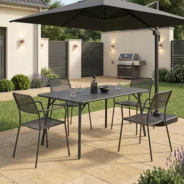 Η τραπεζαρία Moraja Federal συνδυάζει λειτουργικότητα, στυλ και ποιότητα, προσφέροντας μια εξαιρετική λύση για τη διαμόρφωση του κήπου ή του μπαλκονιού σας. Aποτελεί μια εξαιρετική επιλογή για όσους αναζητούν ένα κομψό, άνετο και ανθεκτικό σύνολο για να απολαύσουν τον καφέ ή το φαγητό τους, στον εξωτερικό τους χώρο.