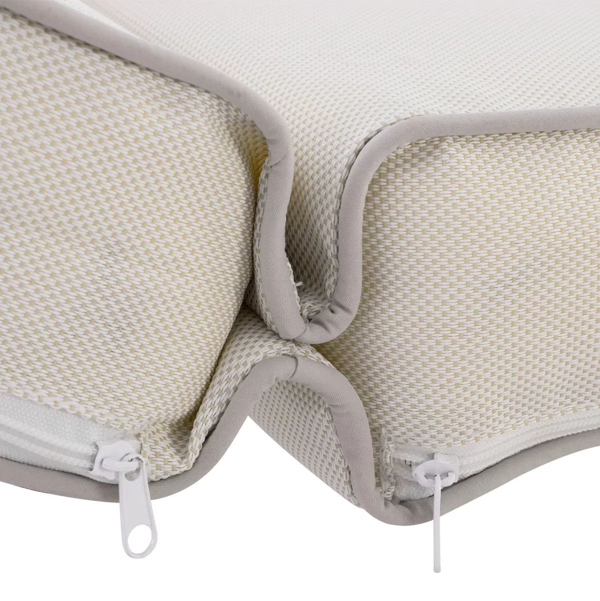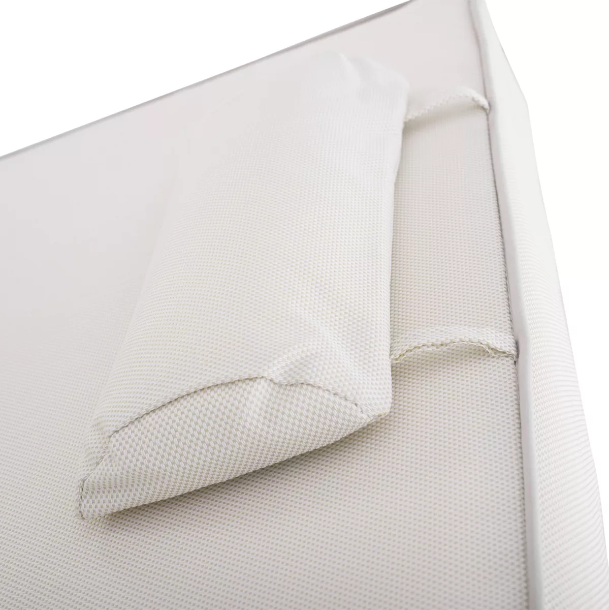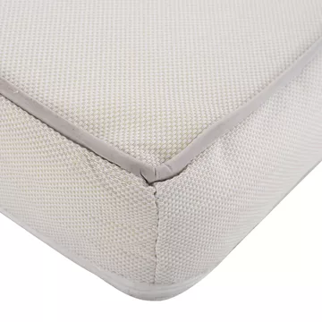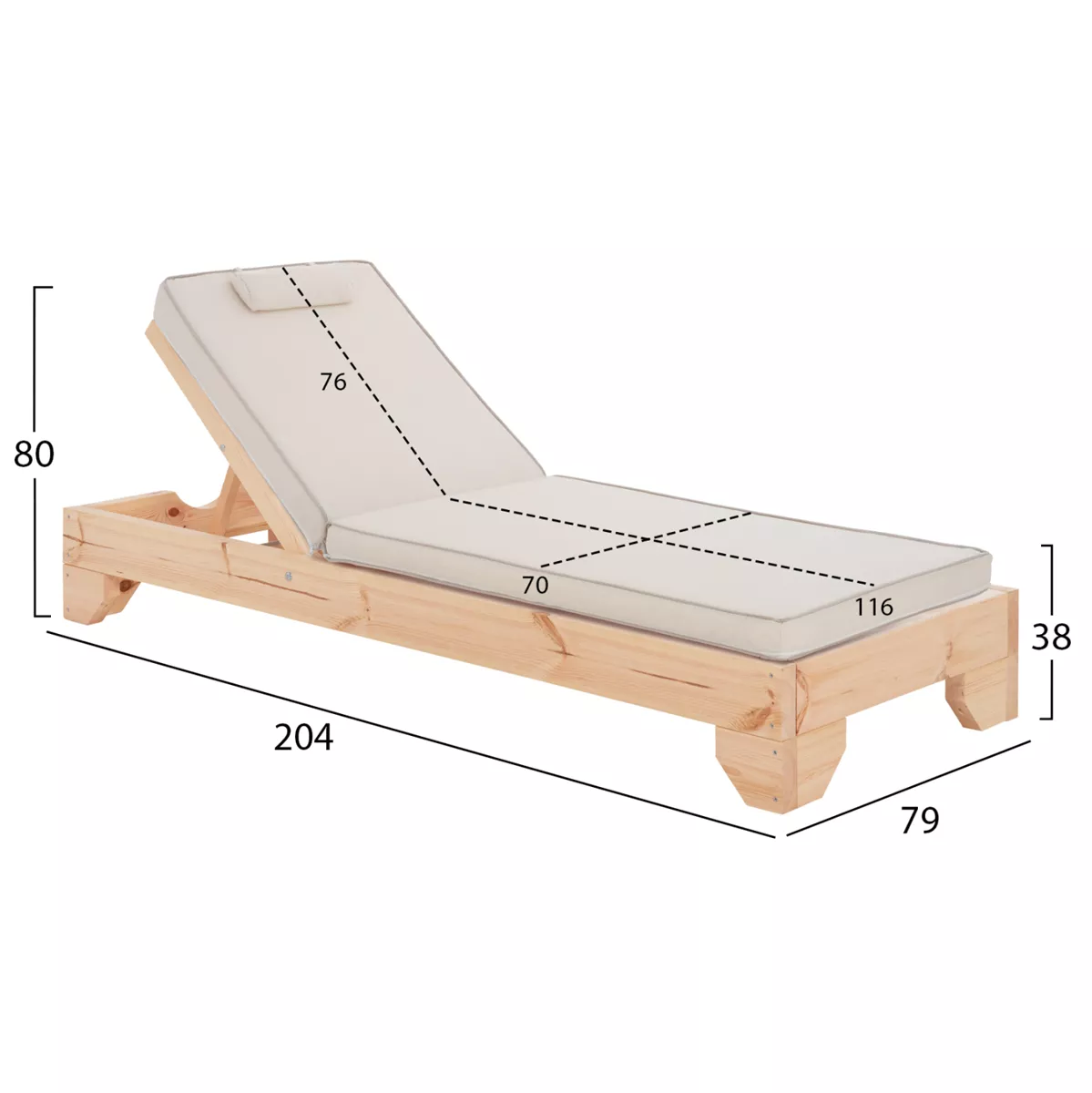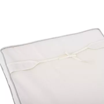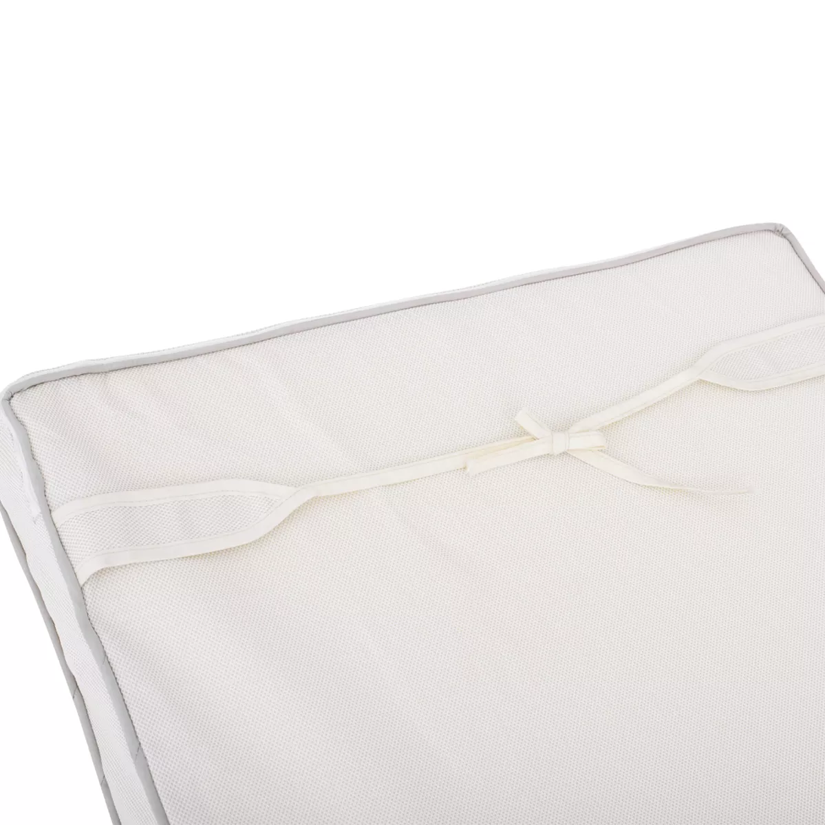 -Το μαξιλάρι/στρώμα με μαξιλαράκι κεφαλής που συνοδεύει την ξαπλώστρα είναι από αφρό μέτριας σκληρότητας ενώ το κάλυμμα είναι από textilene σε χρώμα ΕΚΡΟΥ. Δένεται στην ξαπλώστρα με κορδόνια.