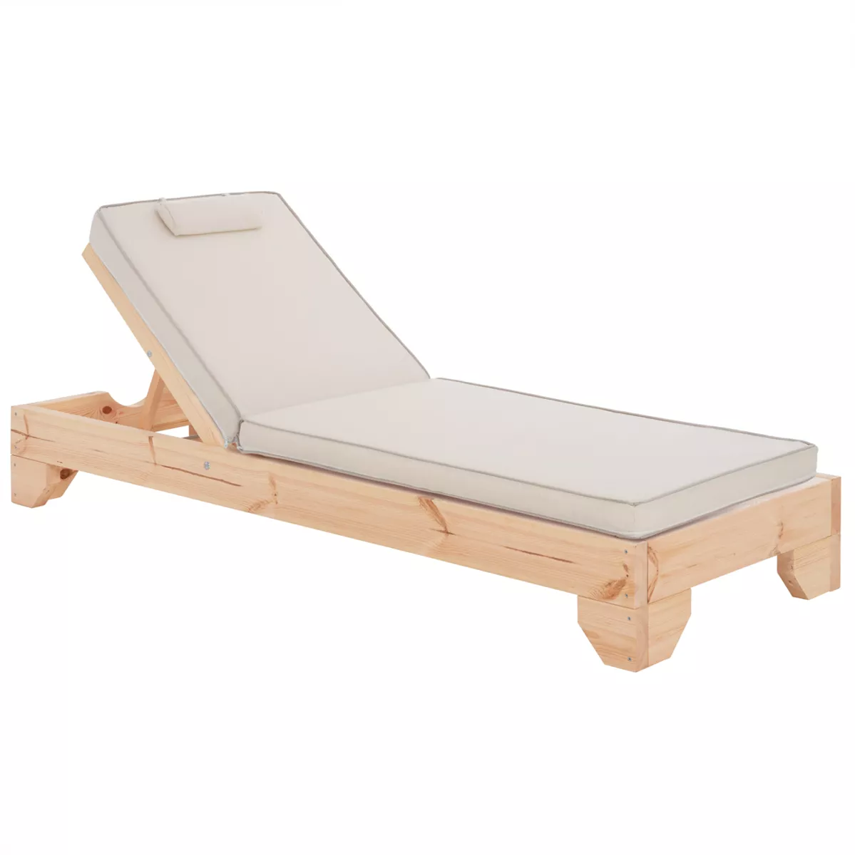 -Ολόκληρη η ξαπλώστρα έχει κατασκευαστεί από ξύλο πεύκου με εμποτισμό και επιπλέον στρώση με βερνίκι νερού. Το πεύκο είναι ένα μαλακό, λευκό ή ανοιχτό κίτρινο ξύλο το οποίο είναι ελαφρύ σε βάρος με ευθύγραμμα νερά ξύλου. Αντέχει στη συρρίκνωση, διόγκωση και κάμψη. Ο εμποτισμός υπό την ευρεία έννοια είναι ο χρωματισμός του ξύλου (συνήθως βερνίκια) με την μέθοδο της εμβάπτισης.