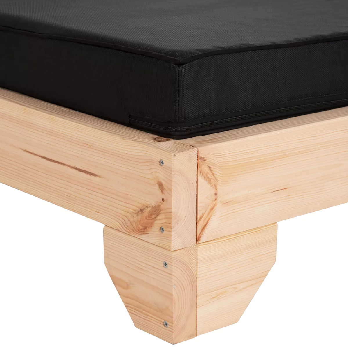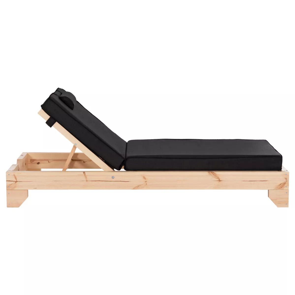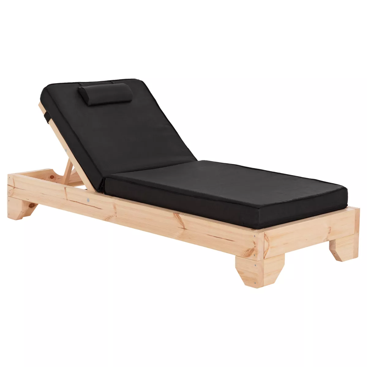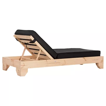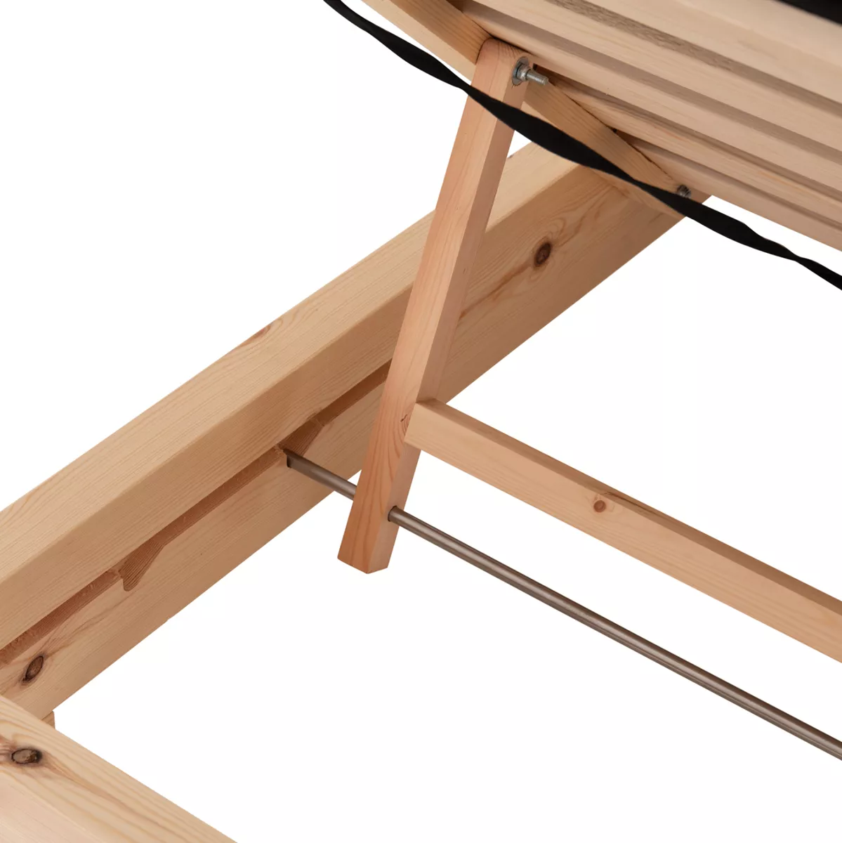 -Ολόκληρη η ξαπλώστρα έχει κατασκευαστεί από ξύλο πεύκου με εμποτισμό και επιπλέον στρώση με βερνίκι νερού. Το πεύκο είναι ένα μαλακό, λευκό ή ανοιχτό κίτρινο ξύλο το οποίο είναι ελαφρύ σε βάρος με ευθύγραμμα νερά ξύλου. Αντέχει στη συρρίκνωση, διόγκωση και κάμψη. Ο εμποτισμός υπό την ευρεία έννοια είναι ο χρωματισμός του ξύλου (συνήθως βερνίκια) με την μέθοδο της εμβάπτισης.