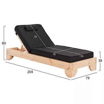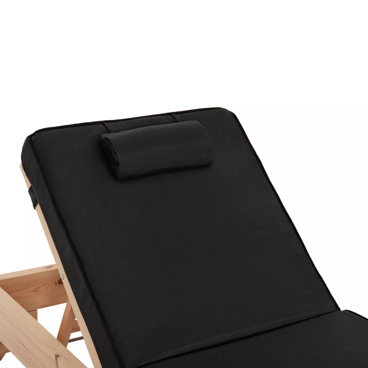 -Το μαξιλάρι/στρώμα με μαξιλαράκι κεφαλής που συνοδεύει την ξαπλώστρα είναι από αφρό μέτριας σκληρότητας ενώ το κάλυμμα είναι από textilene σε ΜΑΥΡΟ χρώμα. Δένεται στην ξαπλώστρα με κορδόνια.
