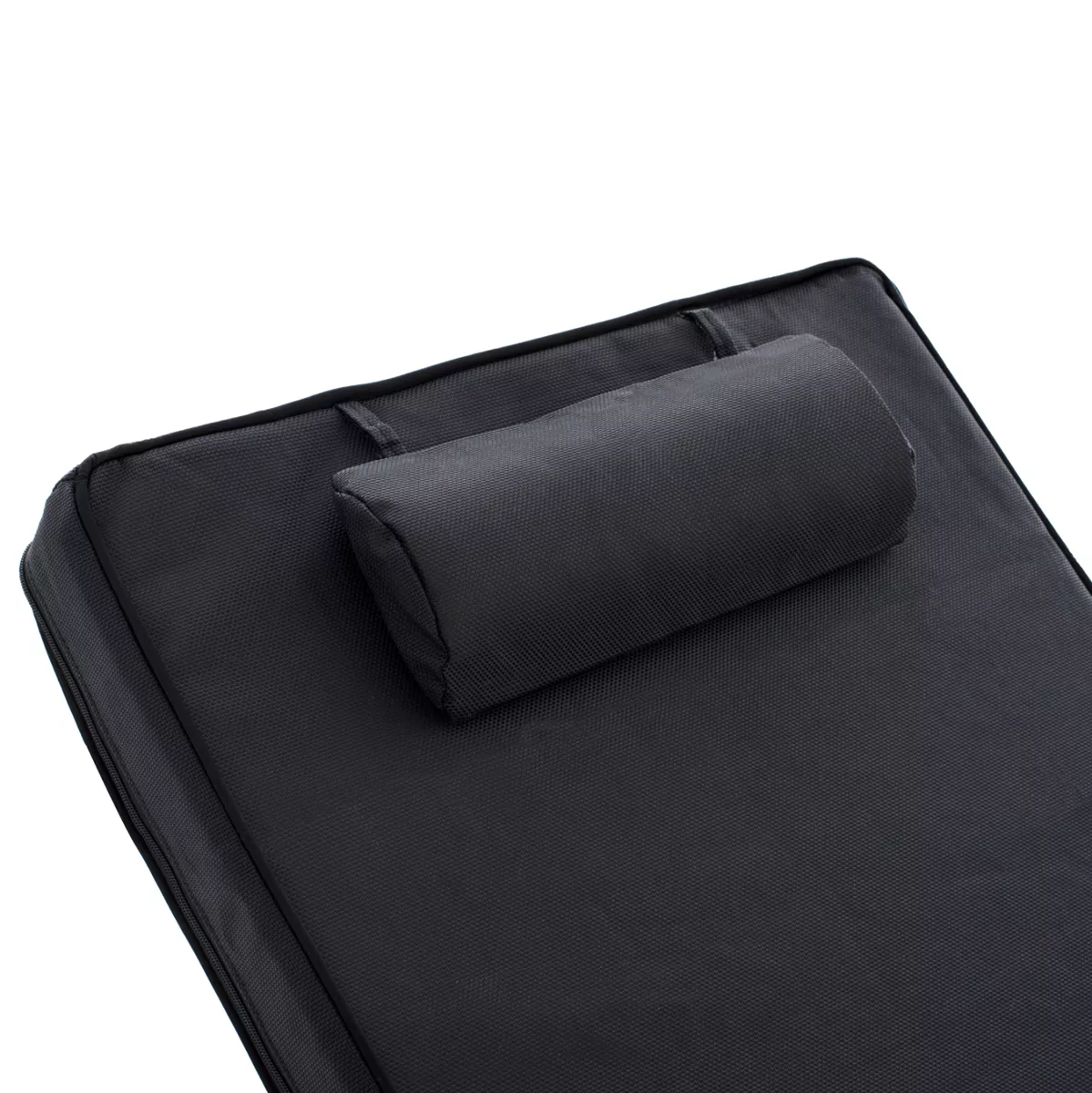 -Το μαξιλάρι που συνοδεύει την ξαπλώστρα είναι από αφρό μέτριας σκληρότητας ενώ το κάλυμμα είναι από textilene σε ΜΑΥΡΟ χρώμα. Δένεται στην ξαπλώστρα με κορδόνια.
