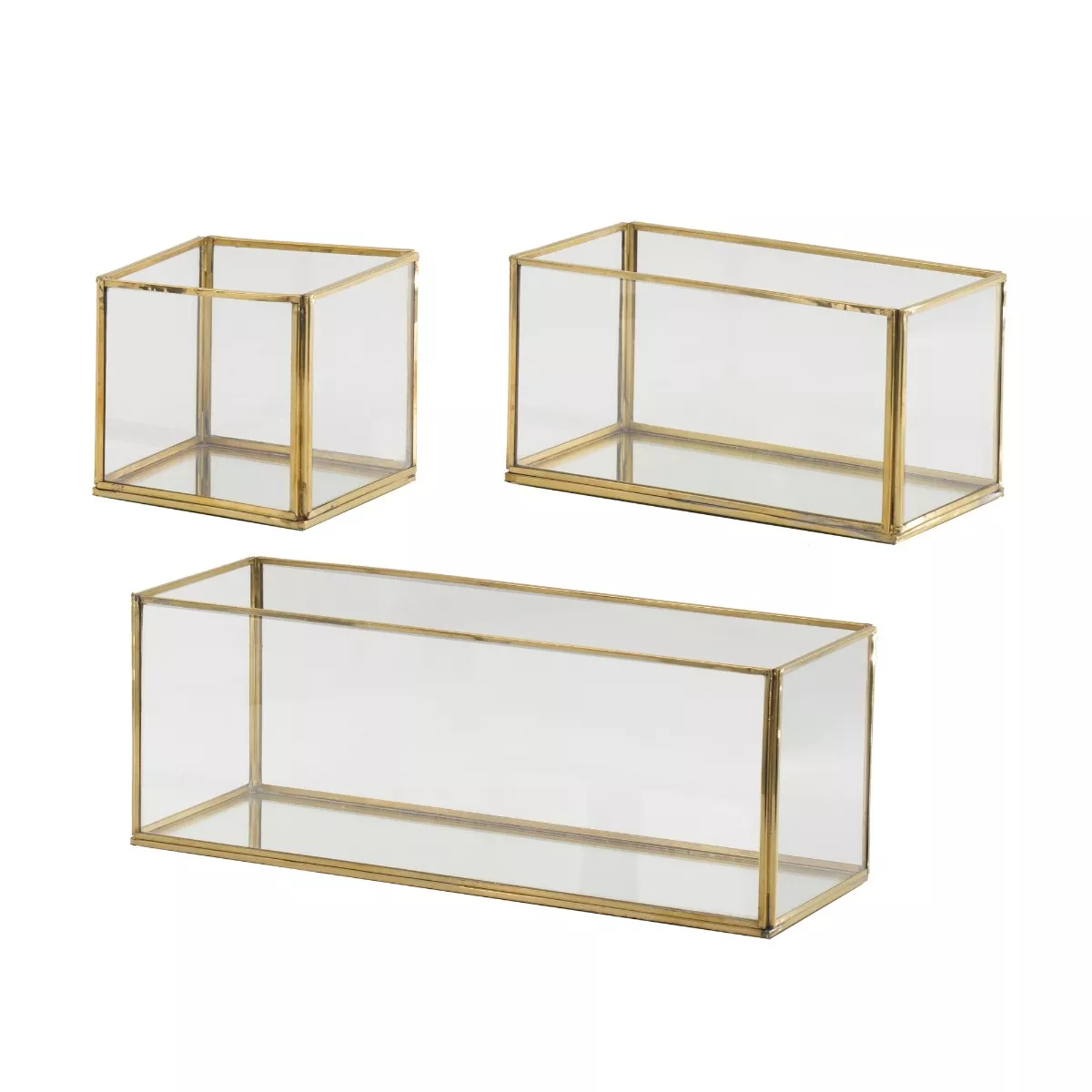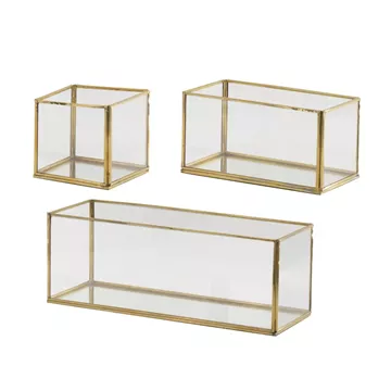 Artekko Boxes Γυάλινα Διακοσμητικά Δοχεία με Χρυσό Μεταλλικό Σκελετό (35.6x12.7x12.7)cm 3pcs
