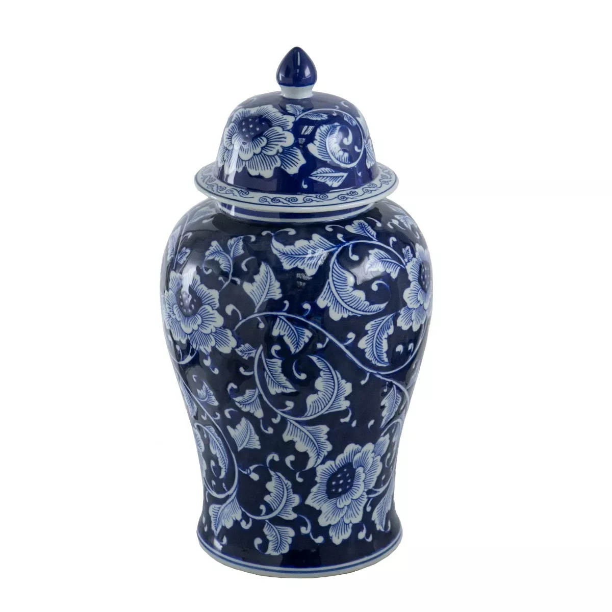 Διακοσμητικό Δοχείο Βάζο με Καπάκι Πορσελάνης σε Λευκό με Μπλε