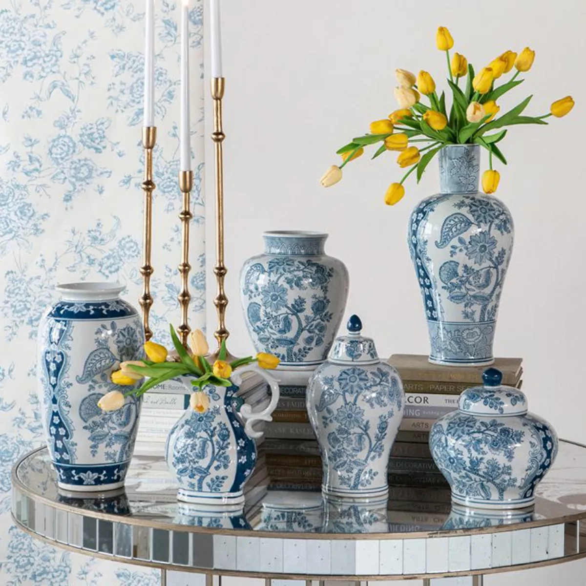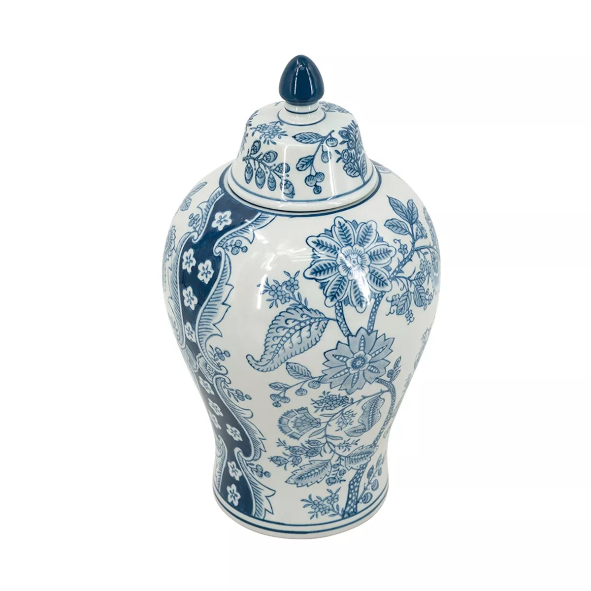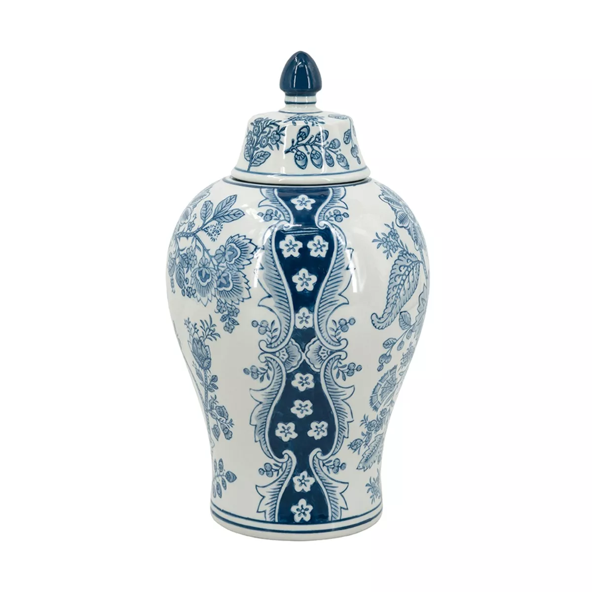 Artekko Melania Διακοσμητικό Βάζο Δοχείο με Καπάκι από Πορσελάνη σε Άσπρο με Μπλε (18x18x32)cm