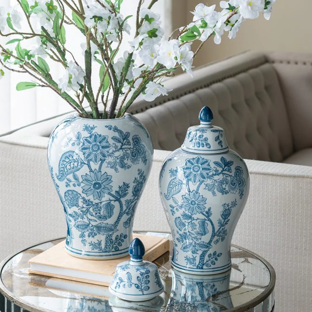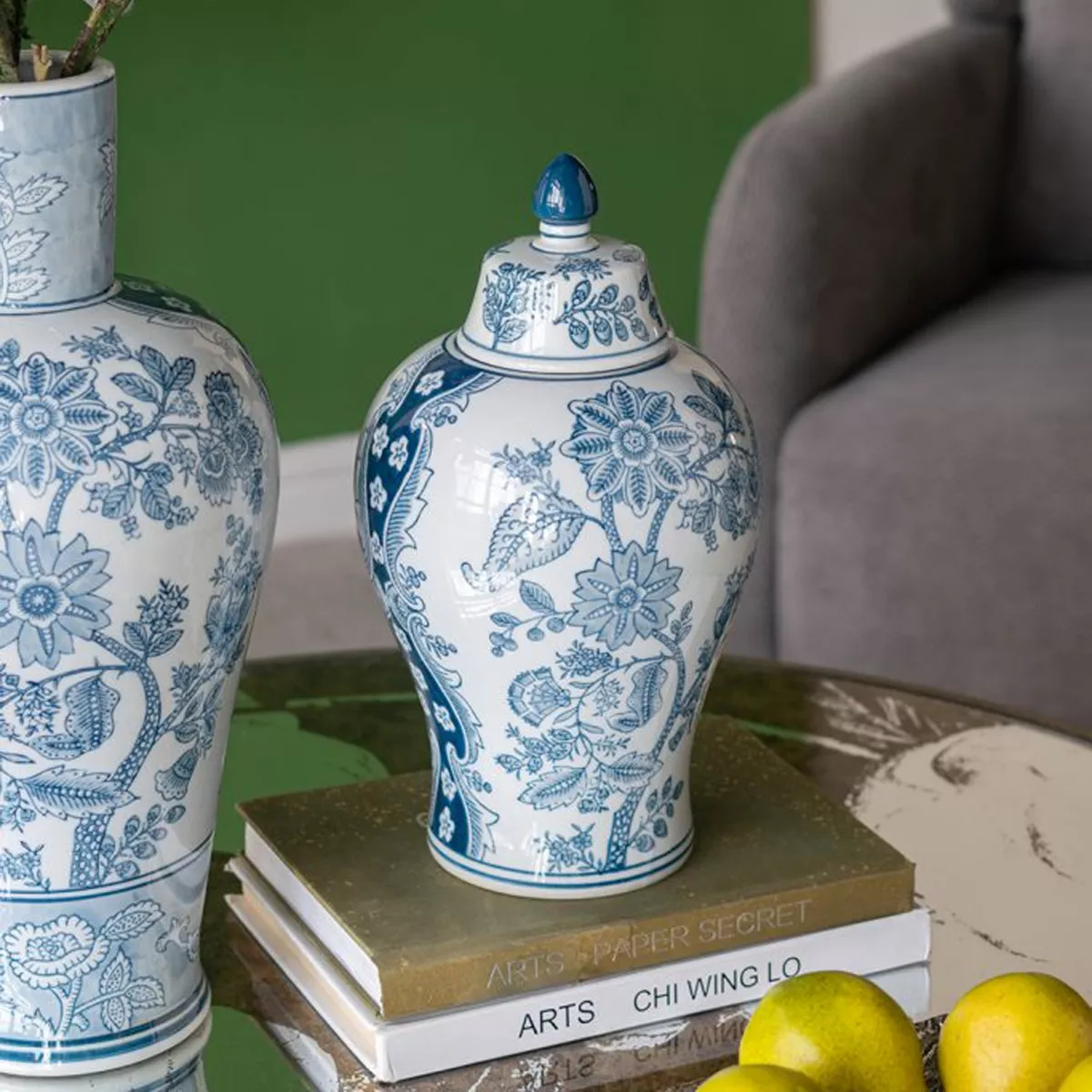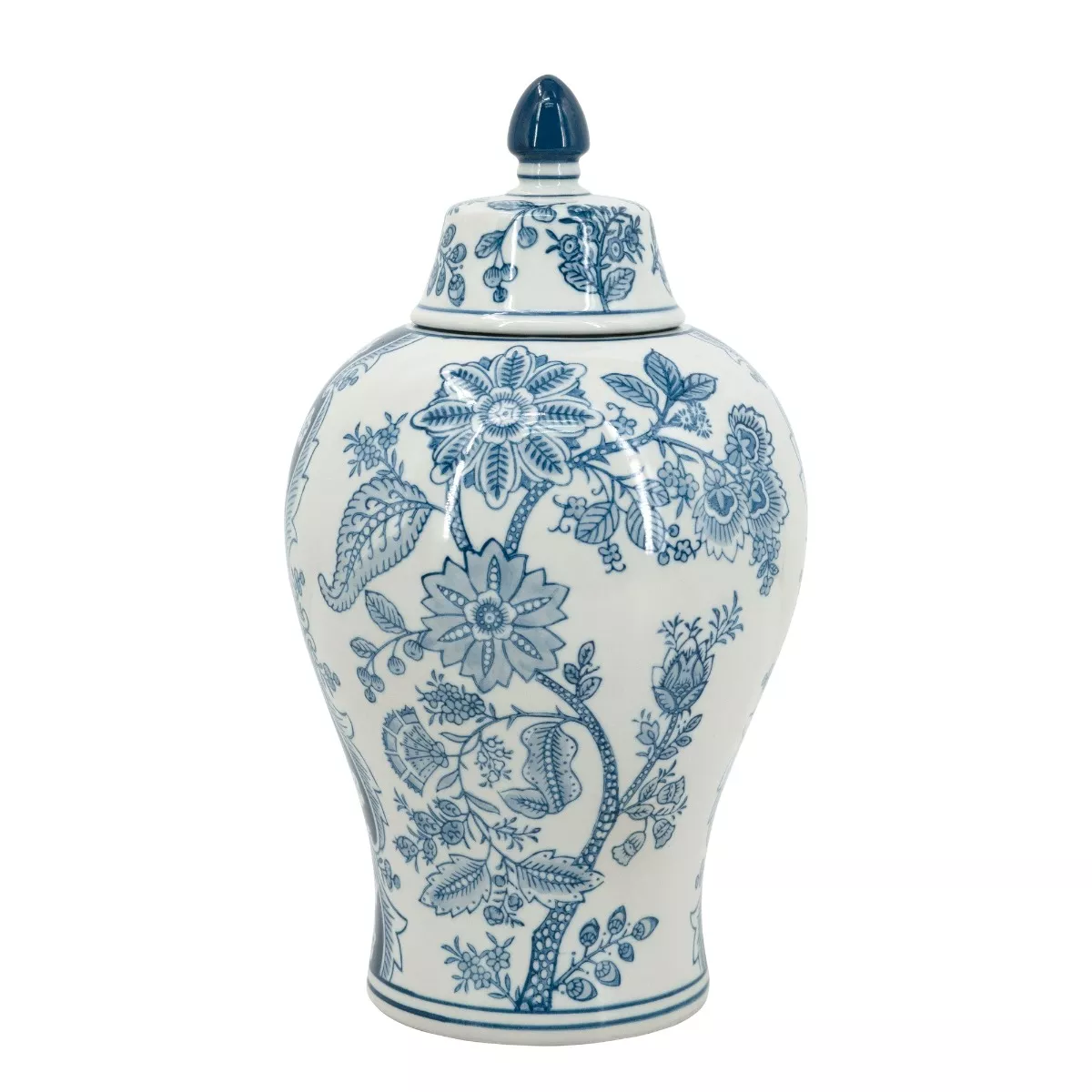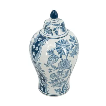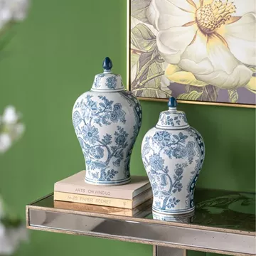 Διακοσμητικό Βάζο Δοχείο με Καπάκι από Πορσελάνη σε Άσπρο με Μπλε