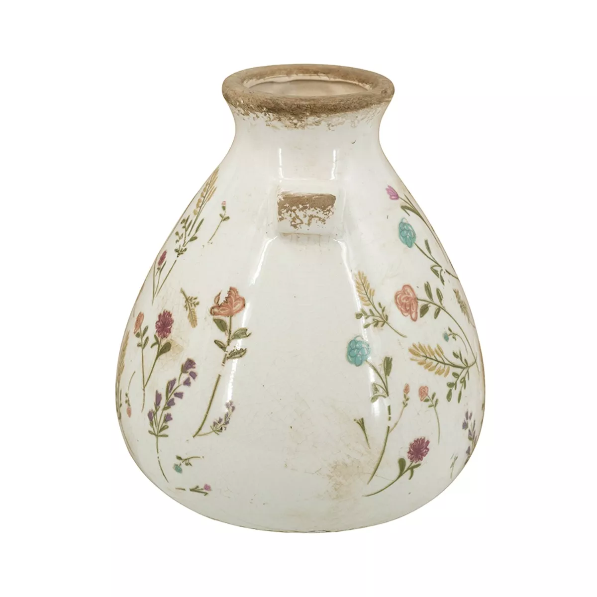 Artekko Aging Λευκό Κεραμικό Βάζο με Λουλούδια (17x17x19.5)cm