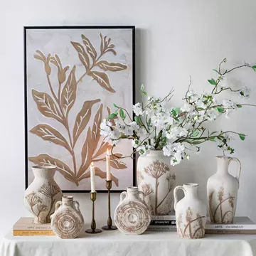 Λευκό Κεραμικό Βάζο με Καφέ Λεπτομέρειες