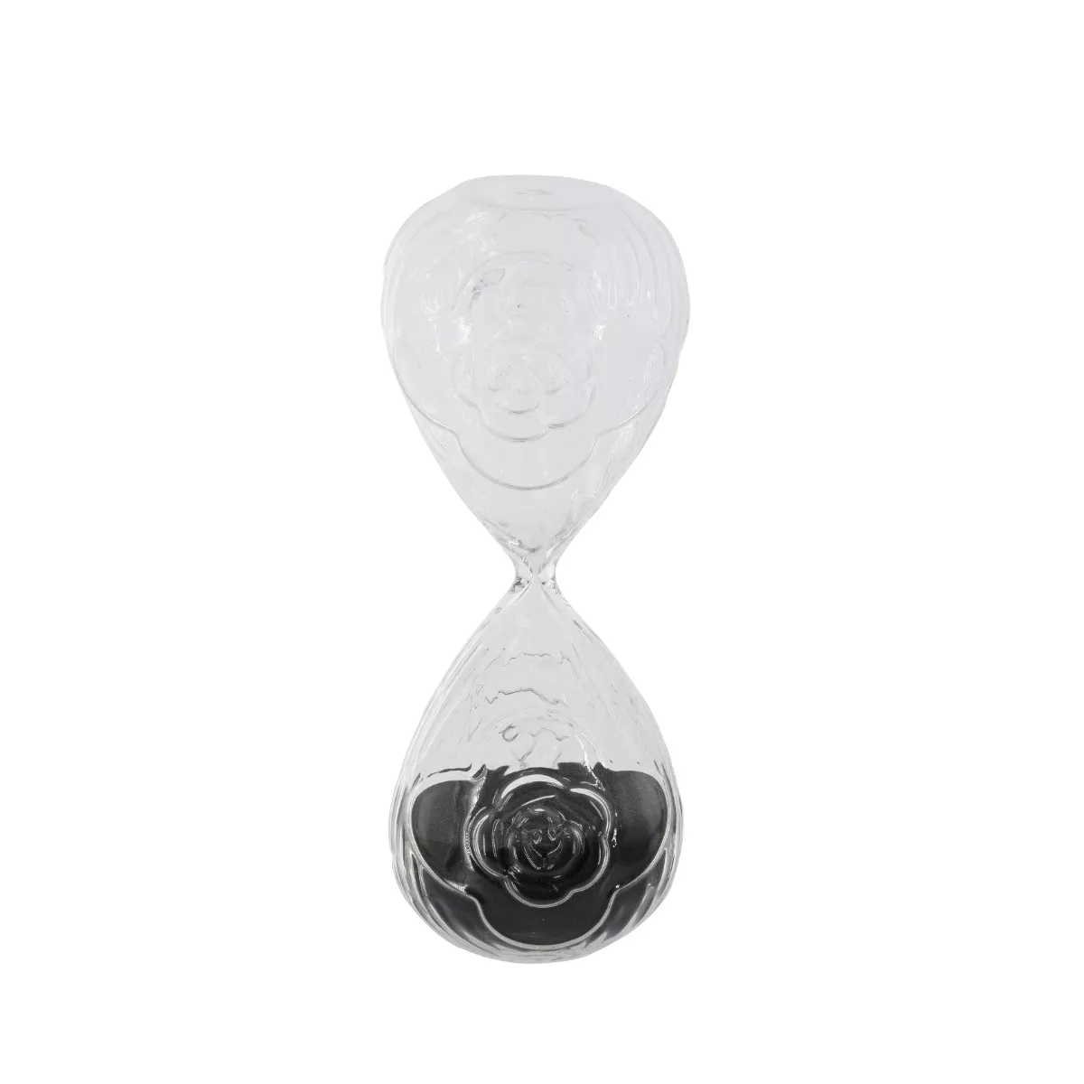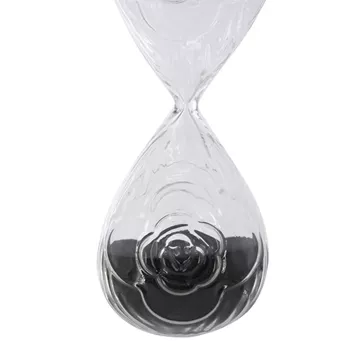 Γυάλινη Κλεψύδρα με Ανάγλυφο Τριαντάφυλλο και Μαύρη Άμμο